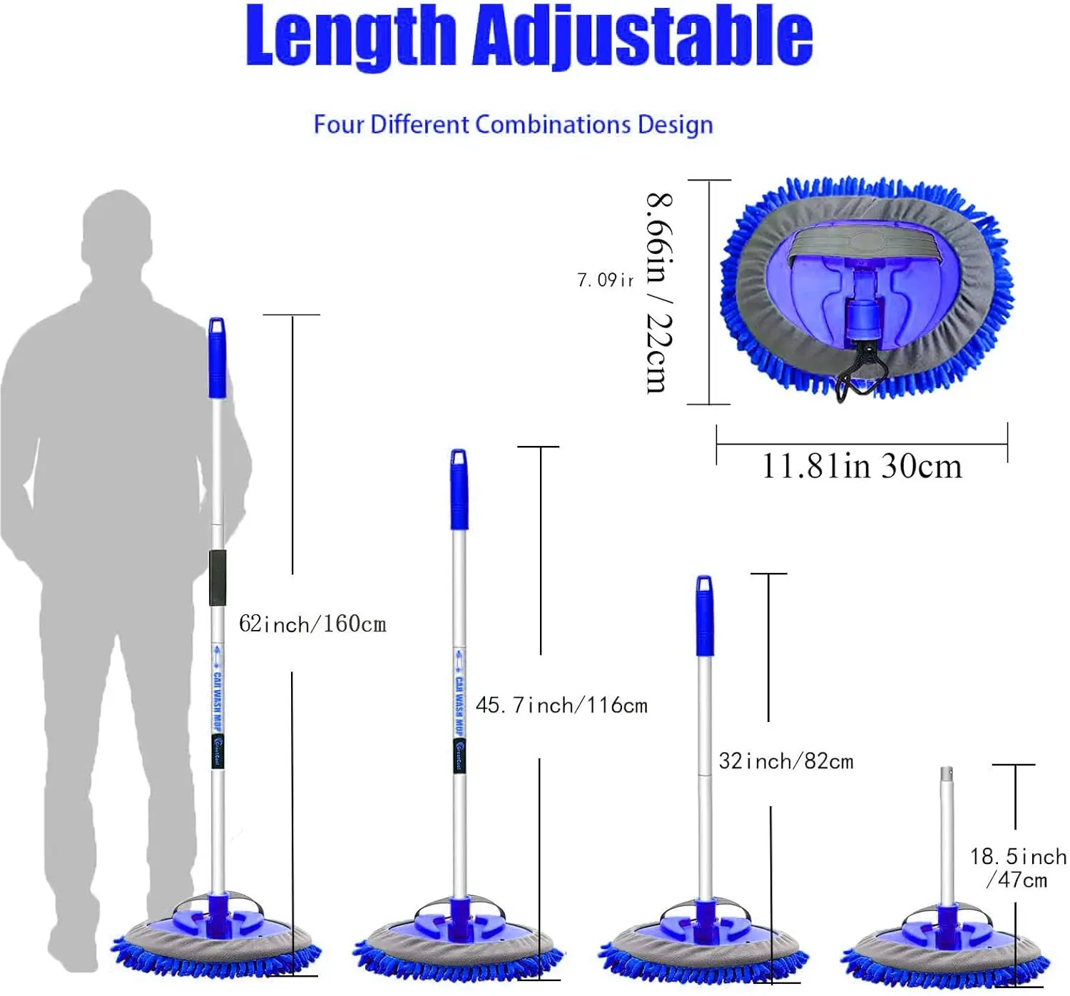 This 62" Car Wash Brush Mop Kit is perfect for washing cars, trucks, SUVs, RVs, and caravans. It includes a long handle and 2 mop heads, making it ideal for detailed cleaning. The chenille microfiber sponge mitt ensures a thorough clean. Ideal for both vehicles and household use. The kit is blue, adding a touch of color to your cleaning routine.