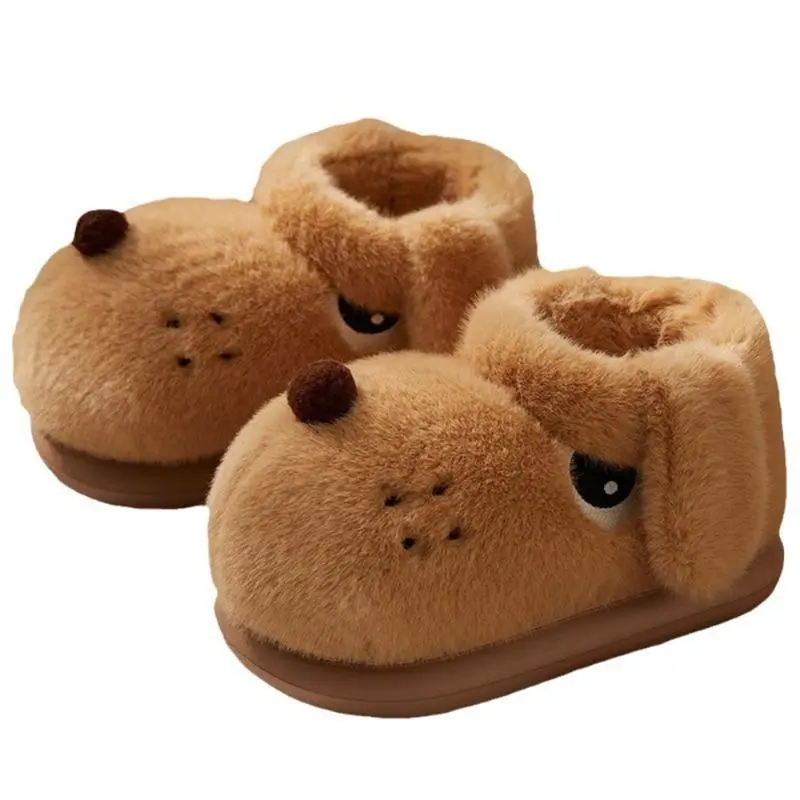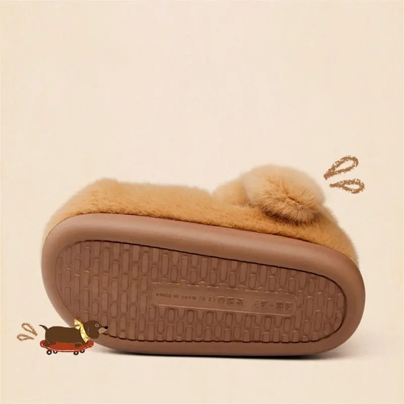 (New)Cozy Pink Plush Dog-Shaped Slippers for Women - Warm, Anti-Slip Indoor Shoes with Cute Drooping Ears Design