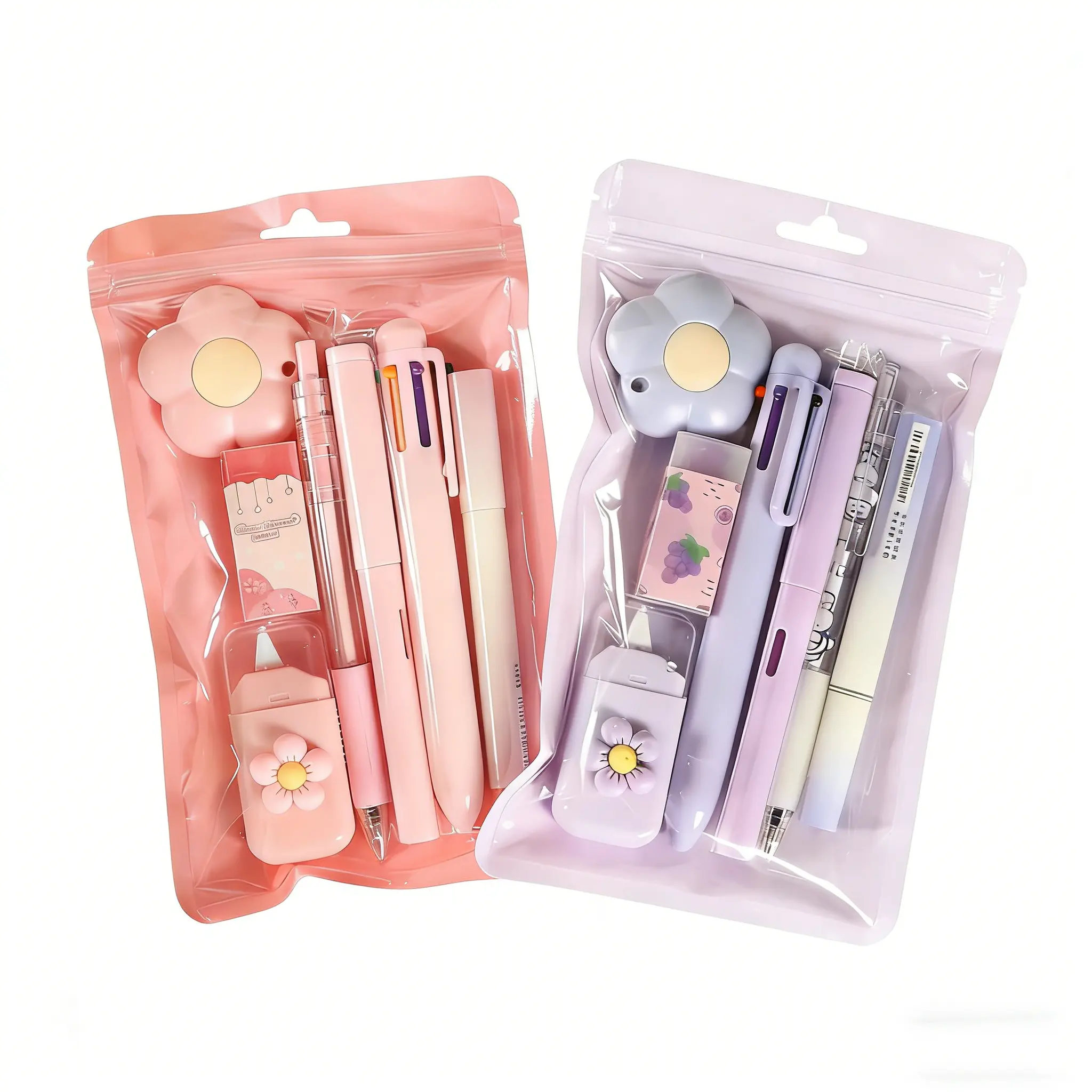 Cute Design: This stationery set features a delicate flower and gradient color design, perfect for students with a kawaii aesthetic and functional writing tools to add fun to your children's back to school.