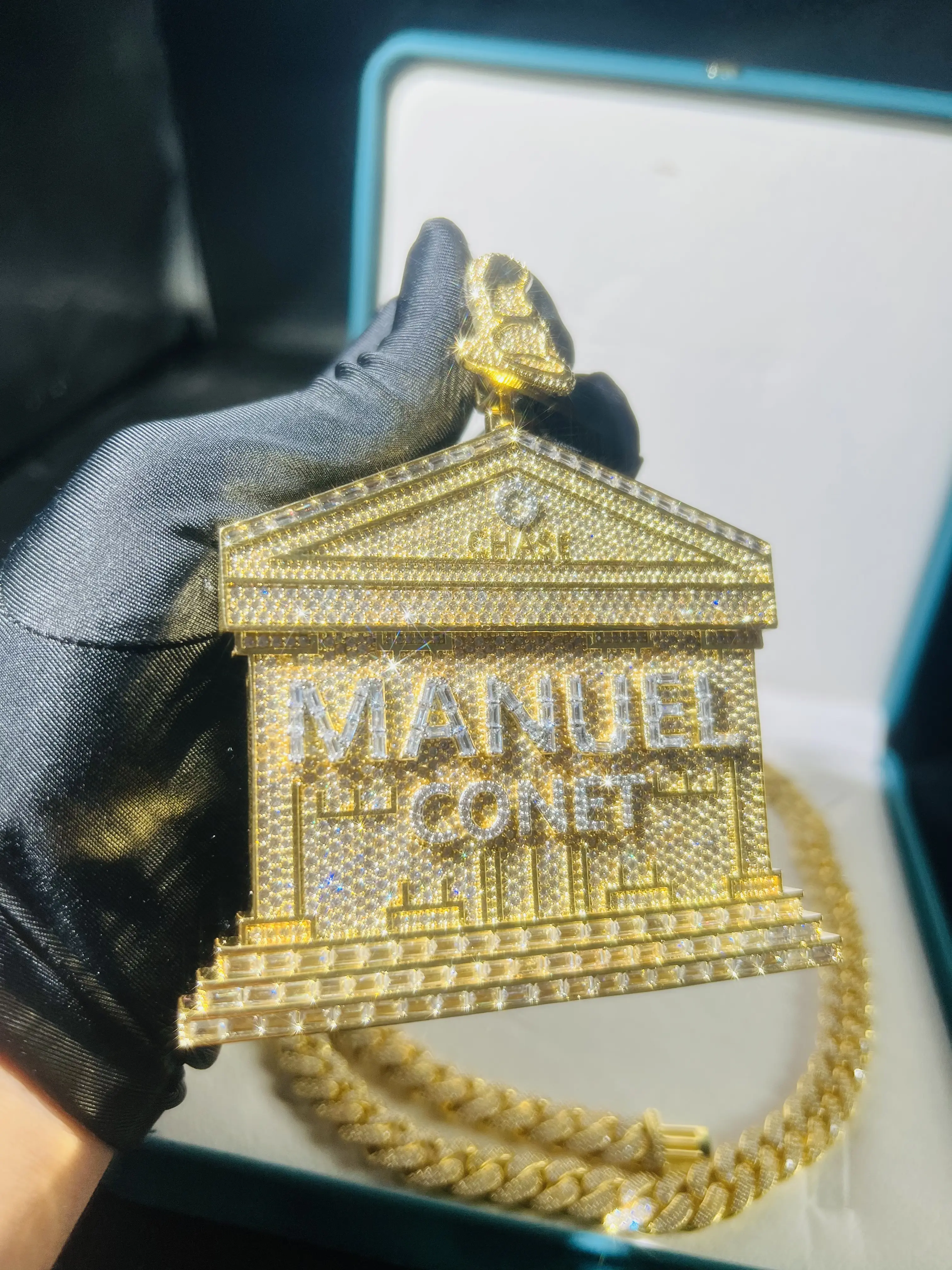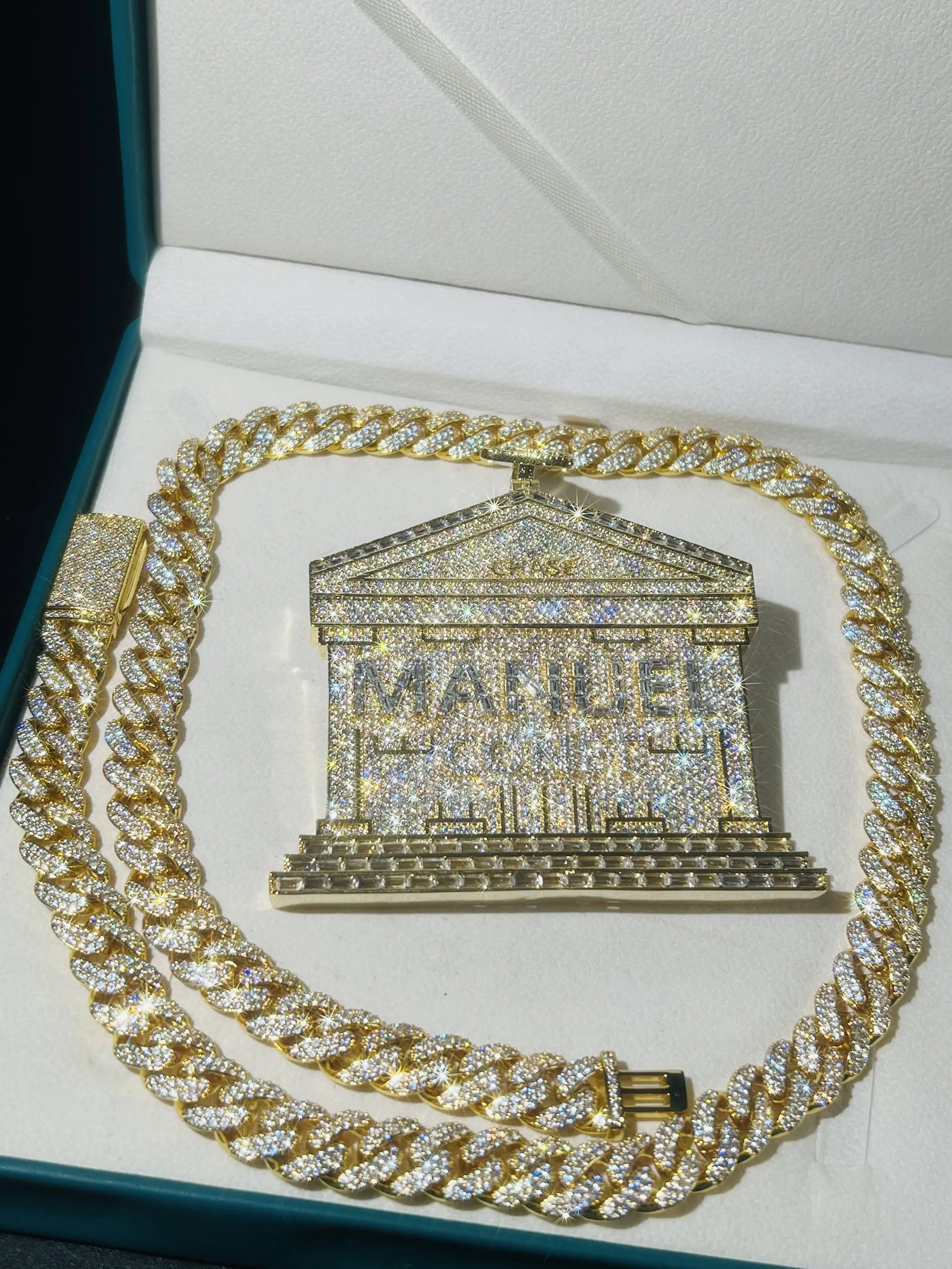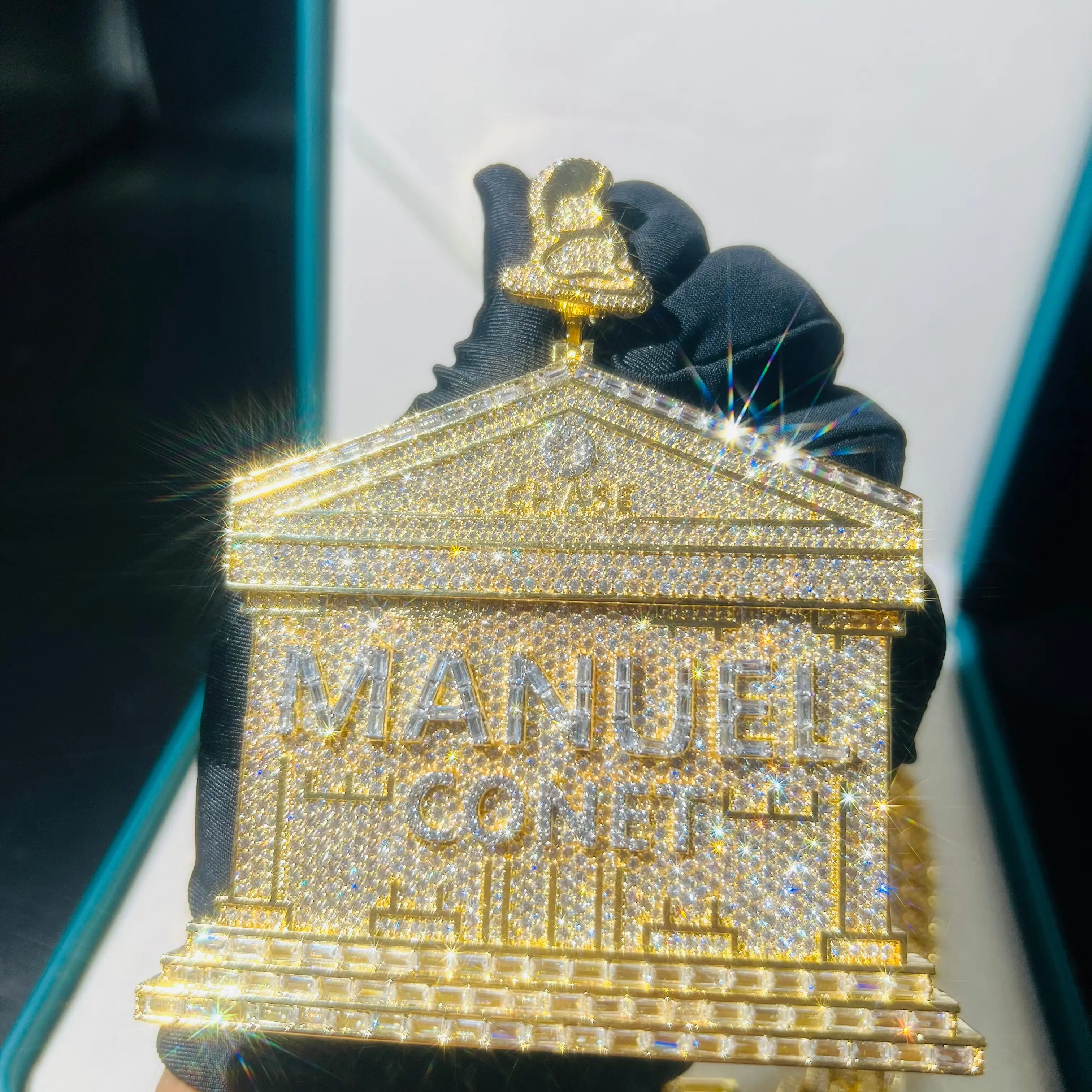 Customized chilled building pendant, luxury house hip-hop style pendant gold-plated electroplated pyroxene hip-hop jewelry commemorative gift anniversaryFree Shipping+7-15 Day Delivery