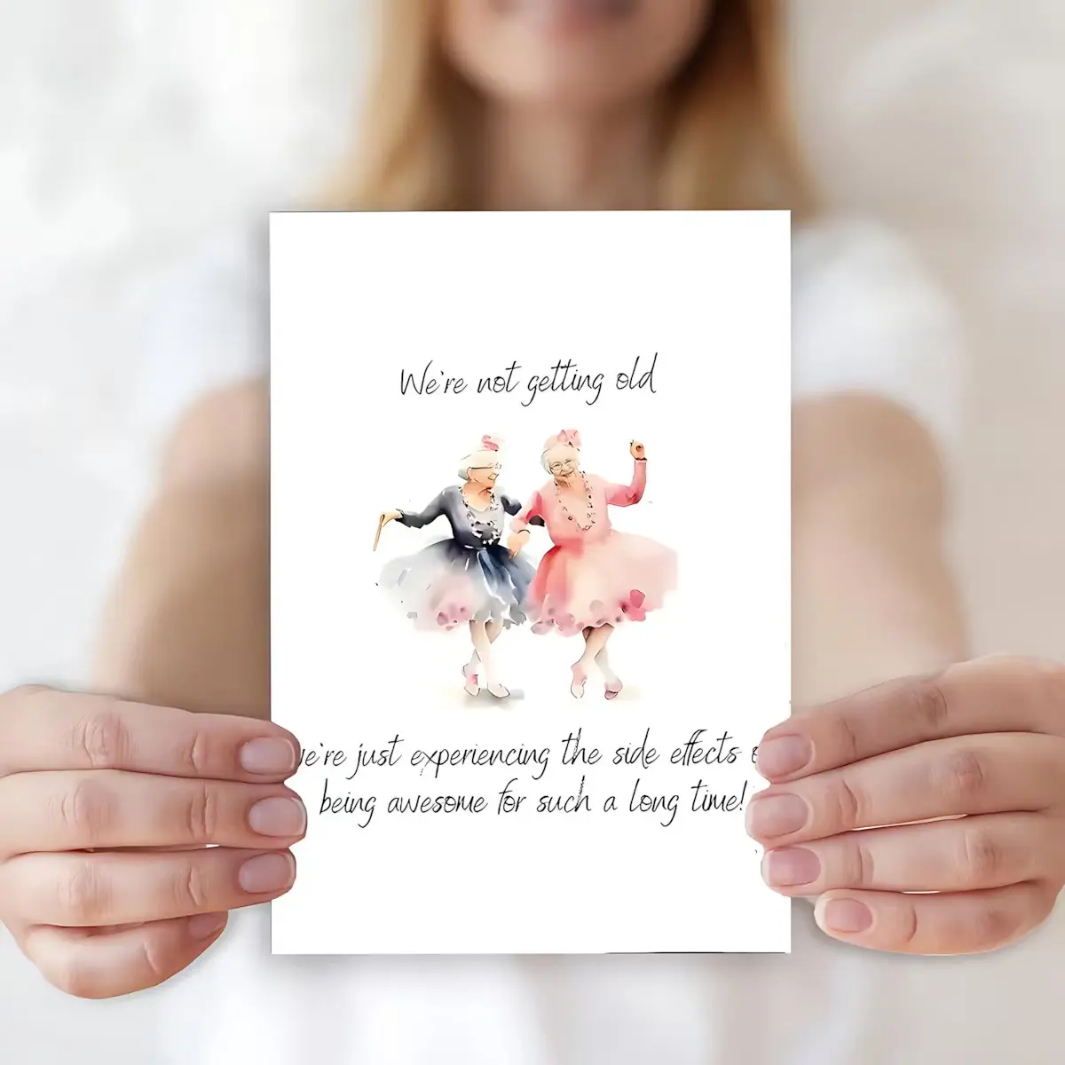 1/3/7pcs Funny Birthday Card for Best Friend, Humorous Getting Older Greeting Card for Women, Senior Friends, BFF, Sister, Funny Aging Humor Card for 60th 70th 80th Birthday, Retirement, Friendship Celebration, Cute Watercolor Dancing Ladies Card
