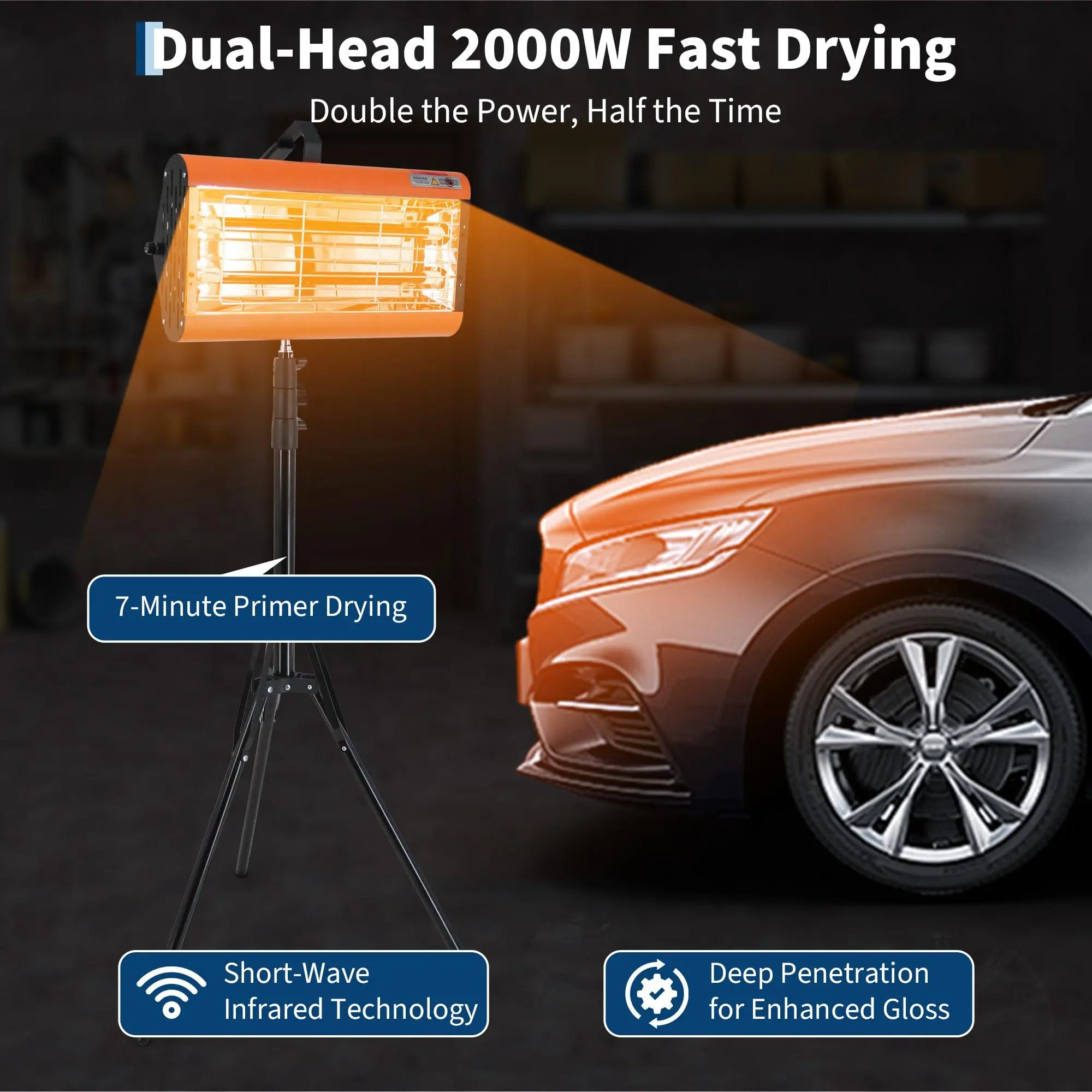 Speed Meets Professional Results - Slash drying time to just 10 minutes for primers! Our 2000W Infrared Paint Curing Lamp uses short-wave technology and quartz tubes to penetrate layers fast, enhancing gloss without foamed. Engineered for auto pros, this Infrared Paint Curing Lamp delivers salon-quality finishes in a fraction of the time.