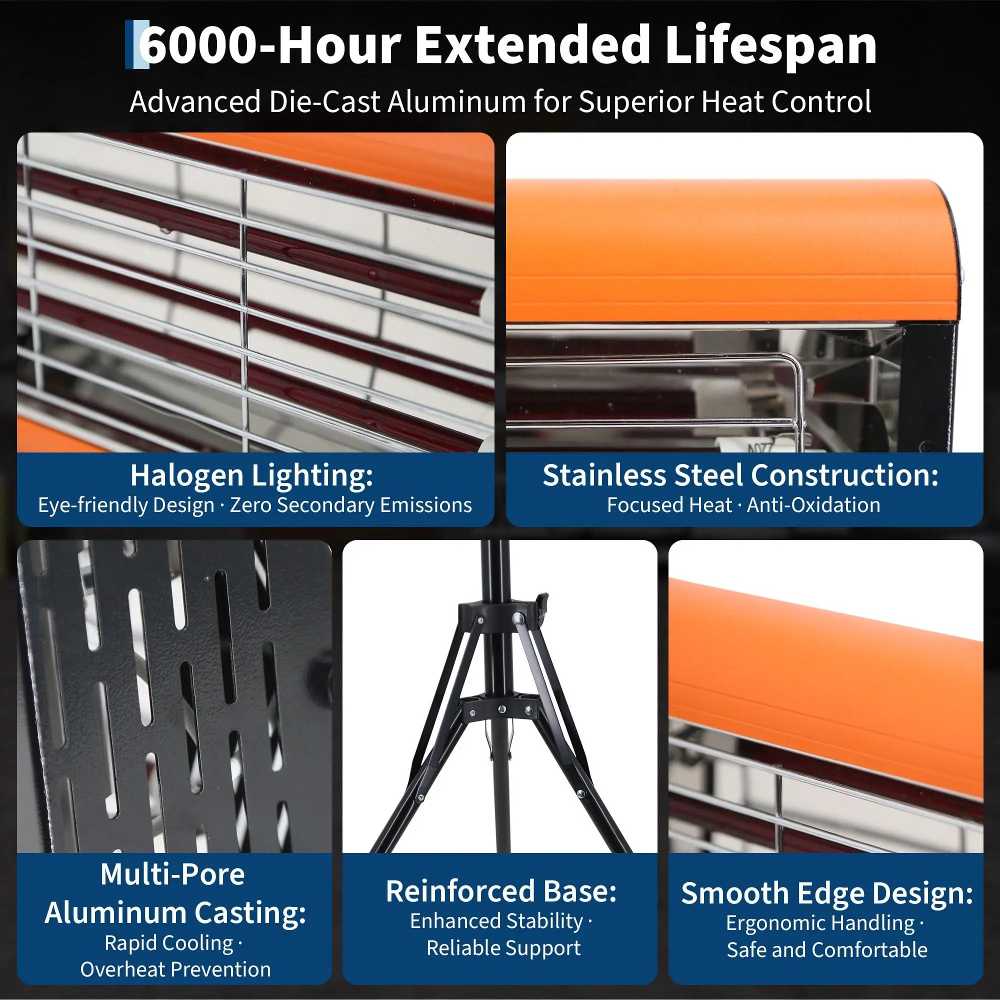Safety Built to Last - Work worry-free with industrial-grade protection. The Infrared Paint Curing Lamp features anti-oxidation stainless steel housing and cool-touch edges, while its thickened carbon steel base resists tipping. This Infrared Paint Curing Lamp prioritizes your safety—so you focus on flawless paint, not hazards.