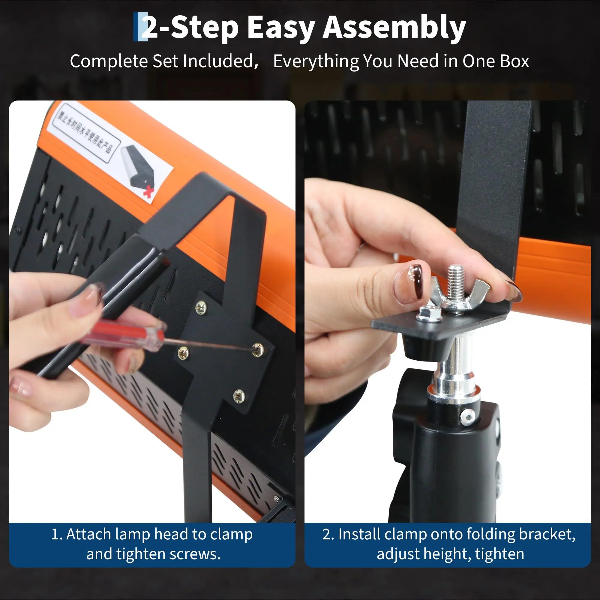 Plug-and-Play Simplicity - Skip complex setups - this Infrared Paint Curing Lamp assembles in 2 steps. Unbox, snap the stand onto the weighted base, and power up. The Infrared Paint Curing Lamp includes all hardware and a clear manual, so you’re curing paint in minutes, not hours. Perfect for mobile techs!