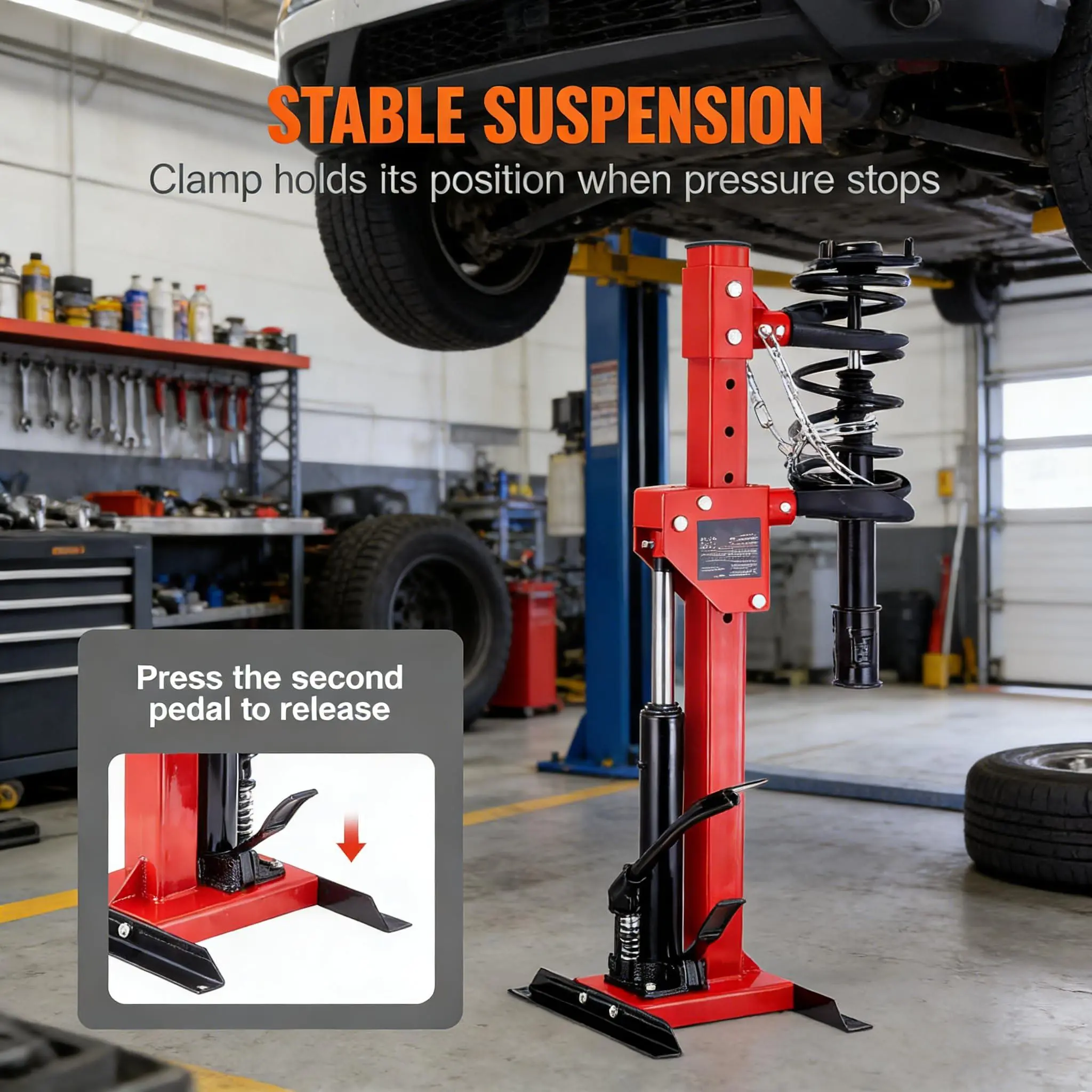 Ultra-Safe & Stable Locking Design:Engineered with heavy-duty steel and precision-machined clamping clamps to prevent spring pop-off. The Garvee stable base and secure locking structure ensure maximum safety for both professional auto shops and home DIY enthusiasts.