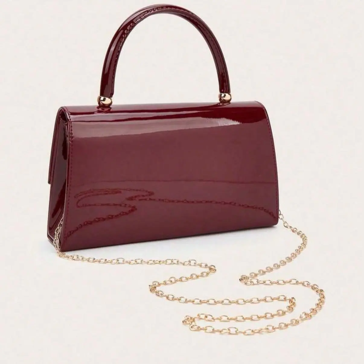 Stylish Luxury Solid Color Handbag, Patent Clutch Woman Wallet PU Portable On Purse Everyday Crossbody Bag Shoulder Bag Trending Purses for 2026 with Chain for Office, College, Work, Business, Commute, Outdoor