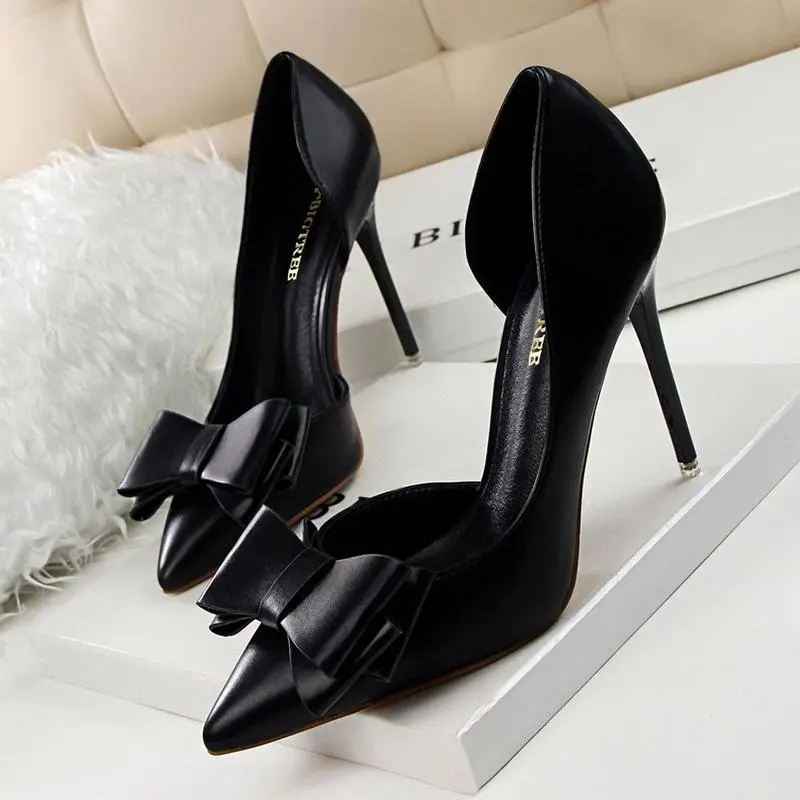 (New)Women's Shoes Korean Style Fashionable Sweet Bowknot High Heels Stiletto Heel Shallow Mouth Pointed Toe Side Hollow out Pumps
