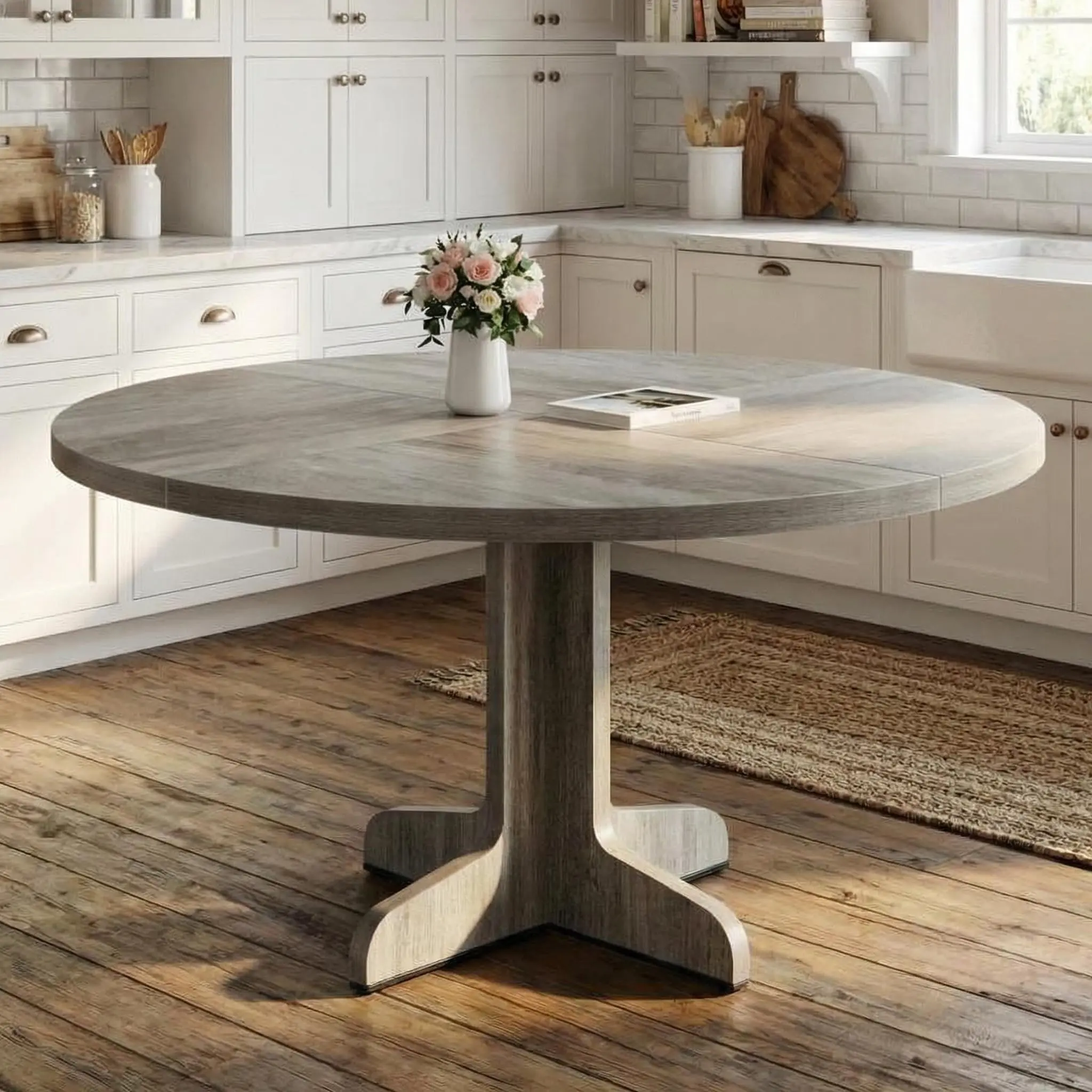 · Versatile and Adaptable Design: The sleek grey finish and round shape make this round dining table a versatile addition to any home decor. Its elegant design seamlessly blends with various interior styles, adding a sophisticated touch to both modern and traditional dining or living rooms.