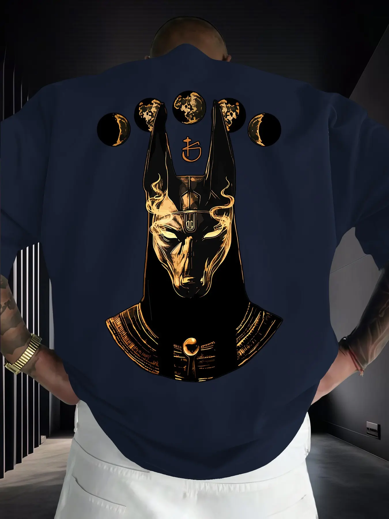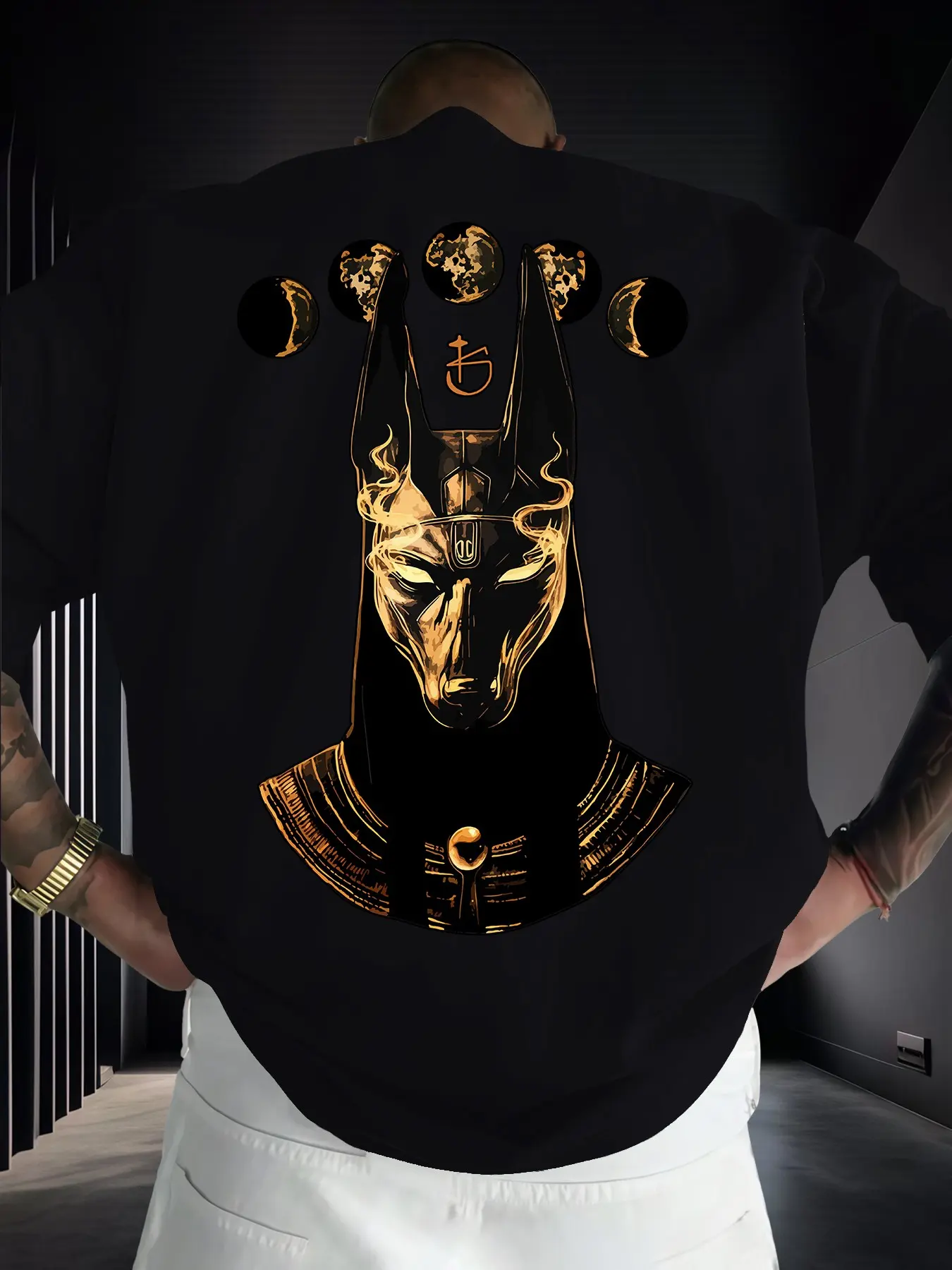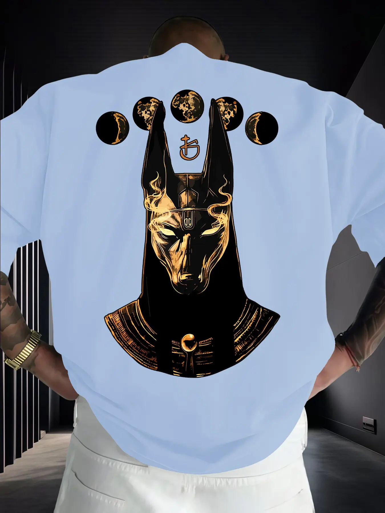 Anubis Moon Phase Egyptian Mythology Print Men's Fashion Short Sleeve Round Neck Casual Summer T-Shirt, Daily Wear
