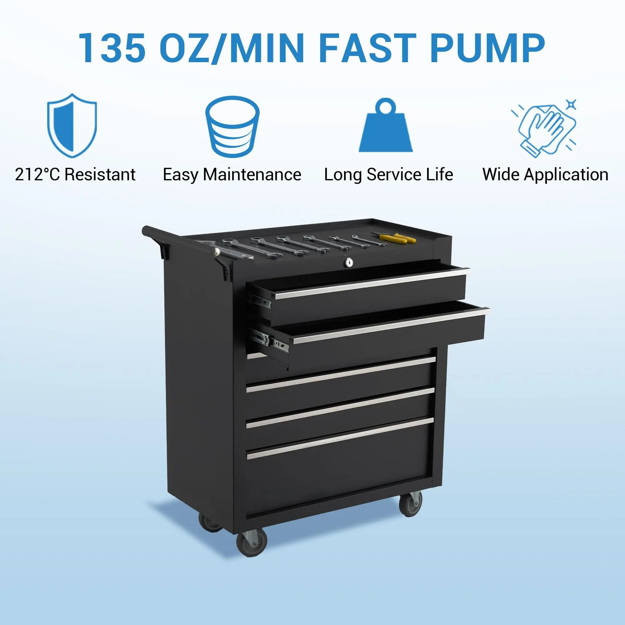 【Versatile Application】 Perfect for garages, workshops, and home studios, this mobile tool chest combines sleek design with practical functionality, making it an ideal choice for both DIY enthusiasts and professionals seeking efficient tool storage.