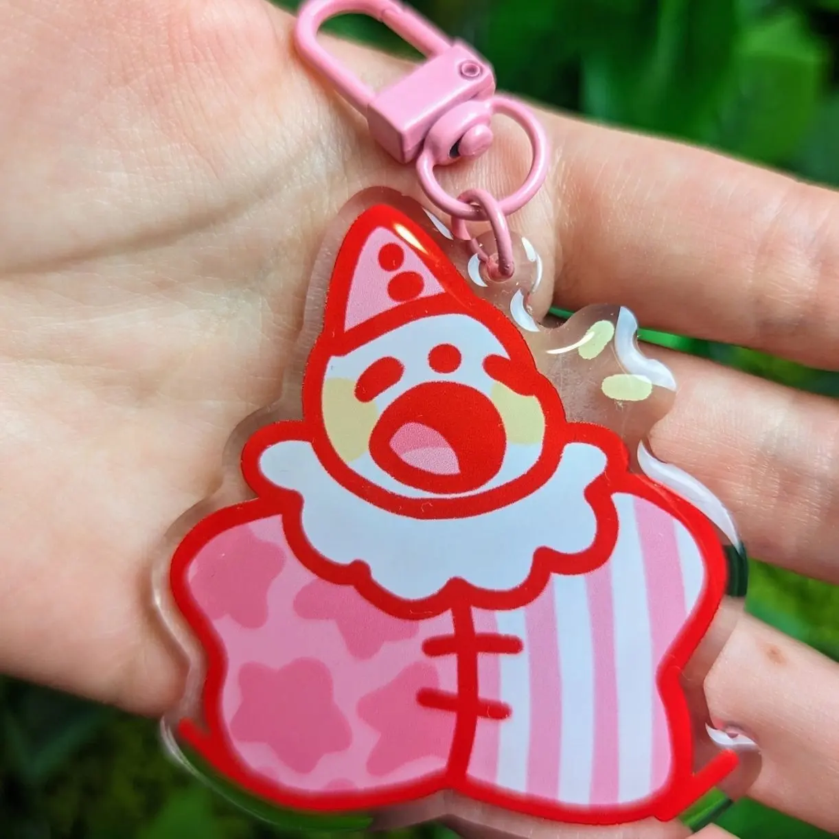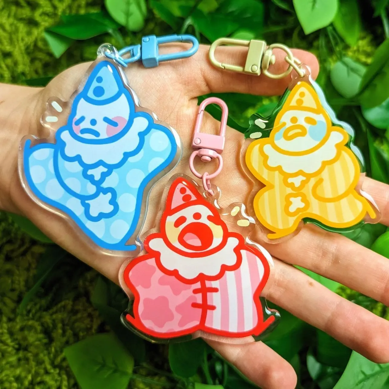 3 Ops Cute Lil Clown Acrylic Keychains / Blue - Red - Orange Tone Bag Charm Cutest Gifts