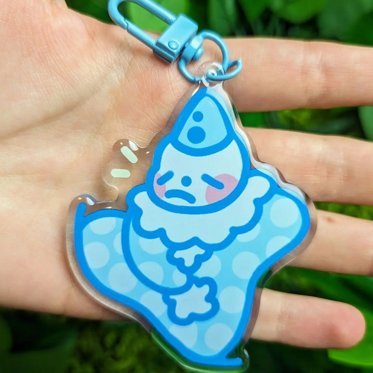 5. 3 Ops Cute Lil Clown Acrylic Keychains / Blue - Red - Orange Tone Bag Charm Cutest Gifts