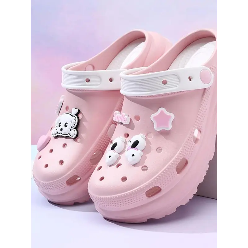 (New)Women's Pink Cute Cartoon Decorated Clogs, Thick Bottom Slippers, Casual Comfortable Non-slip Clogs for Indoor Outdoor Wear, Ladies Slippers, Lightweight Slipper, Summer Comfy Clogs for Daily Wear, Walking Shoes