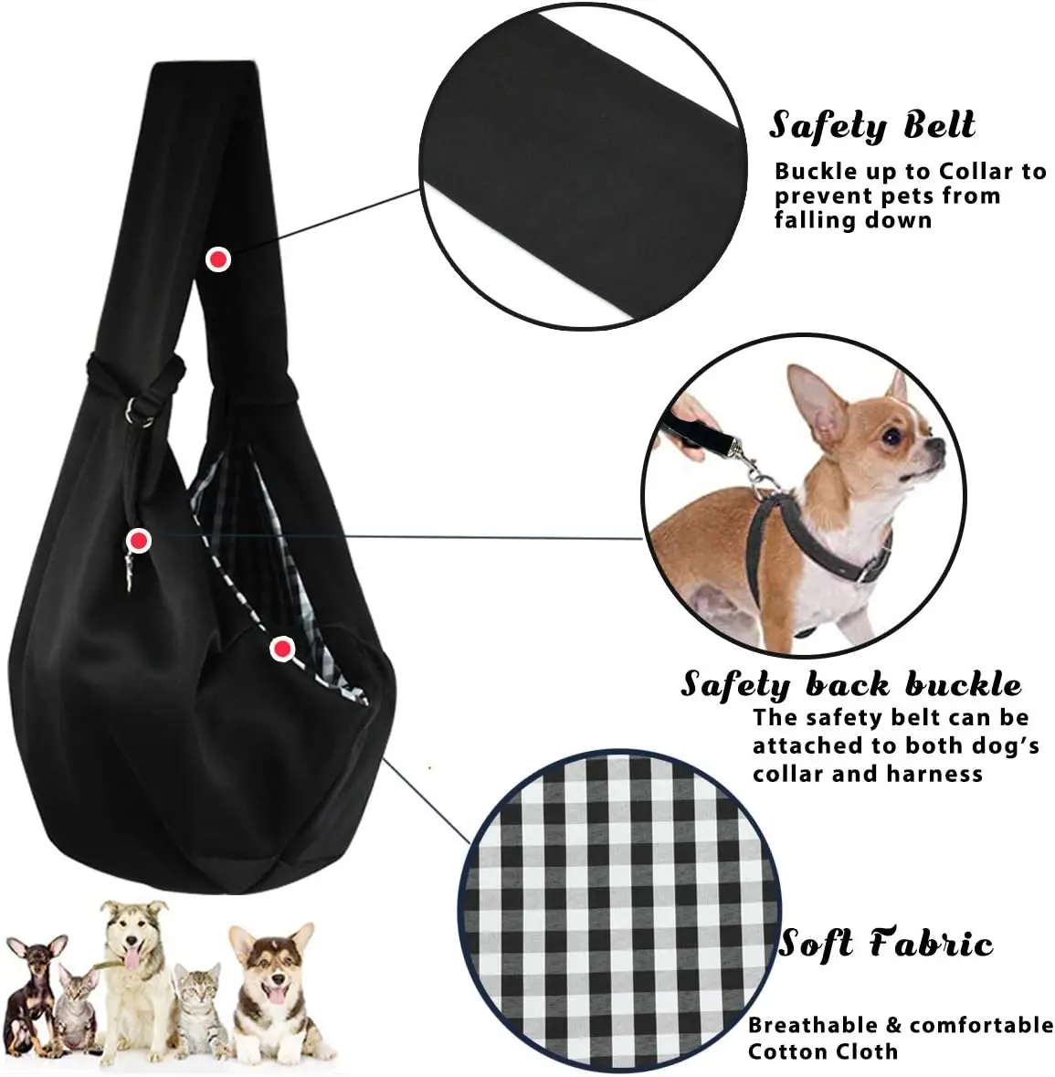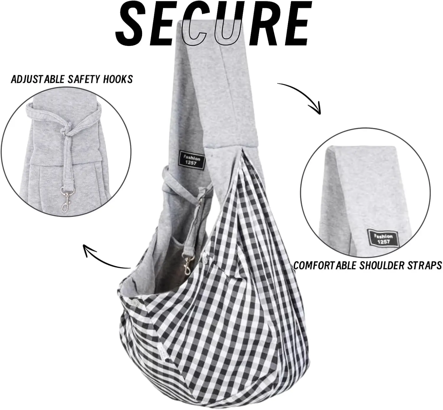 Dog & Cat Sling Carrier for Small and Medium Pets up to 16.5 lbsFeatures:·Breathability: The fabric of the dog backpack is breathable and comfortable, ensuring puppies and kittens do not feel stuffy when wrapped for long periods.·Safety Rope: Equipped with an safety belt to prevent pets from jumping out of the bag.·Hands-Free Design: The pet crossbody bag features a hands-free design, allowing you to keep your hands free while your pet stays by your side.·Convenient Storage: The dog bag can be folded for storage, making it easy to carry and not taking up too much space.·Gift Idea: Perfect for friends with pets, this dog carrier bag ensures they can travel with their pets without worry.Specifications:·Color: Gray/Navy Blue/Khaki/Brown and white grid·Material: Fabric·Load Capacity: 7 kg/16.5 lbs Suitable for: Small dogs and catsUsage:·Travel: Ideal for travel, shopping, and outdoor activities.·Gift: A thoughtful gift for friends with pets.Conclusion:This dog & cat sling carrier is a practical and comfortable solution for transporting small and medium pets up to 16.5 lbs. It features breathable fabric, a safety rope, a hands-free design, and convenient storage, making it perfect for travel and gifting.