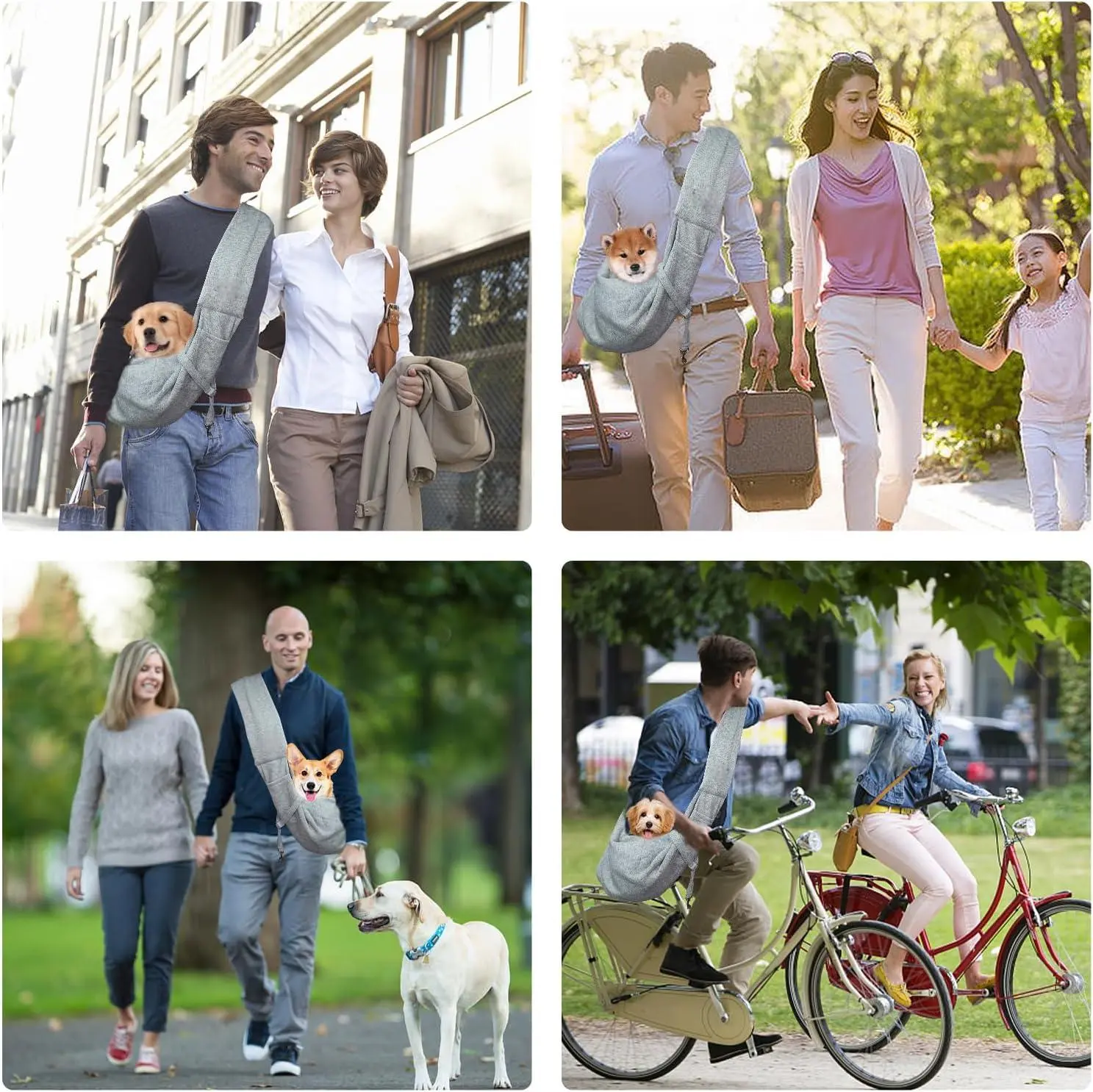 Dog Sling Carrier for Small Dogs, Puppy Carrier Sling Purse, Dog Bags For Traveling, Carrying Bag to Wear Medium Cat, Adjustable Crossbody Pet Sling Pouch Travel, Poop Bag Dispenser, Max 15 lbs