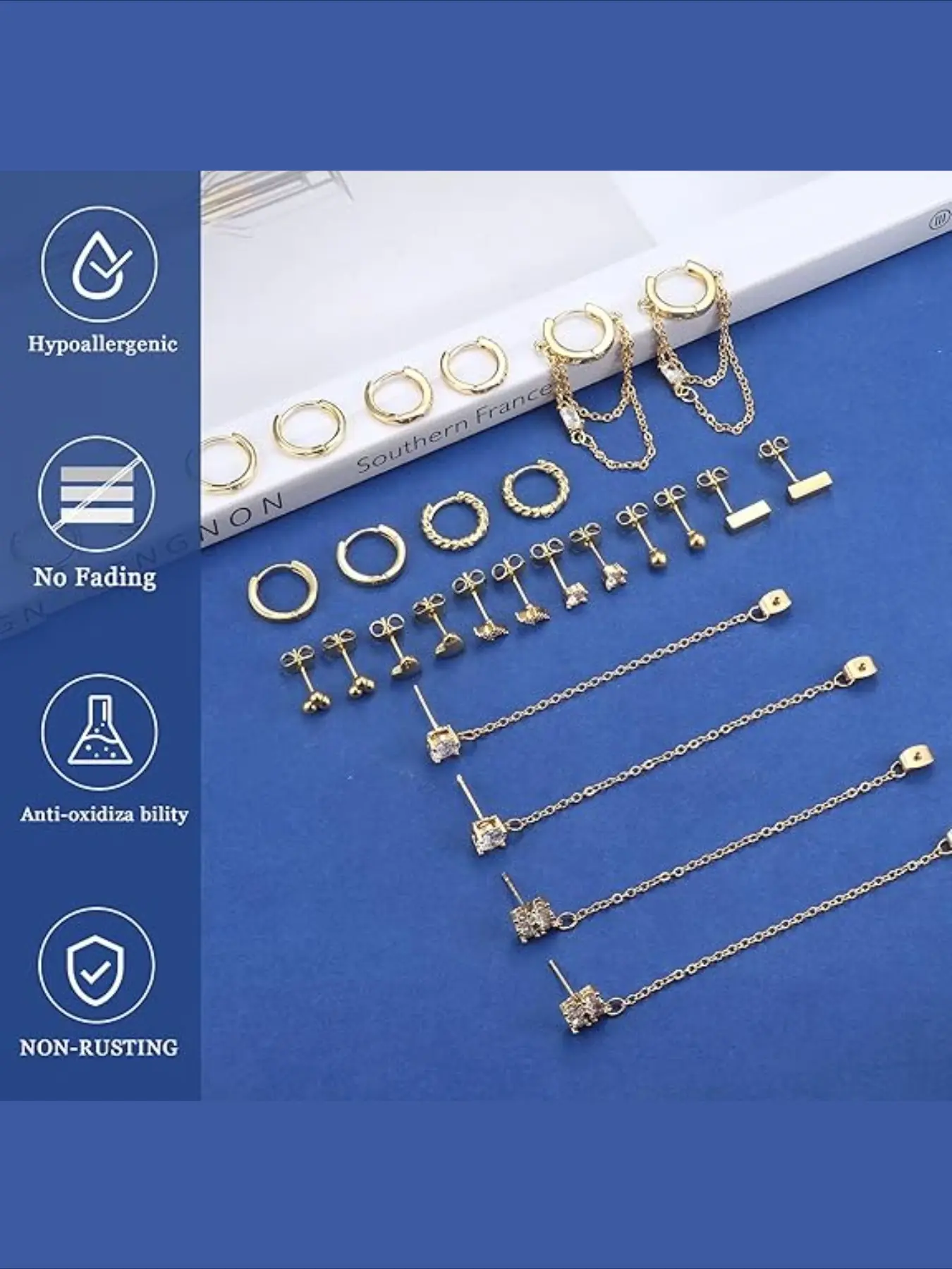13 Pairs Small Earrings Set for Women, Surgical Steel Hoop Earrings, Hypoallergenic Cartilage Dangle Studs, Silver Color/