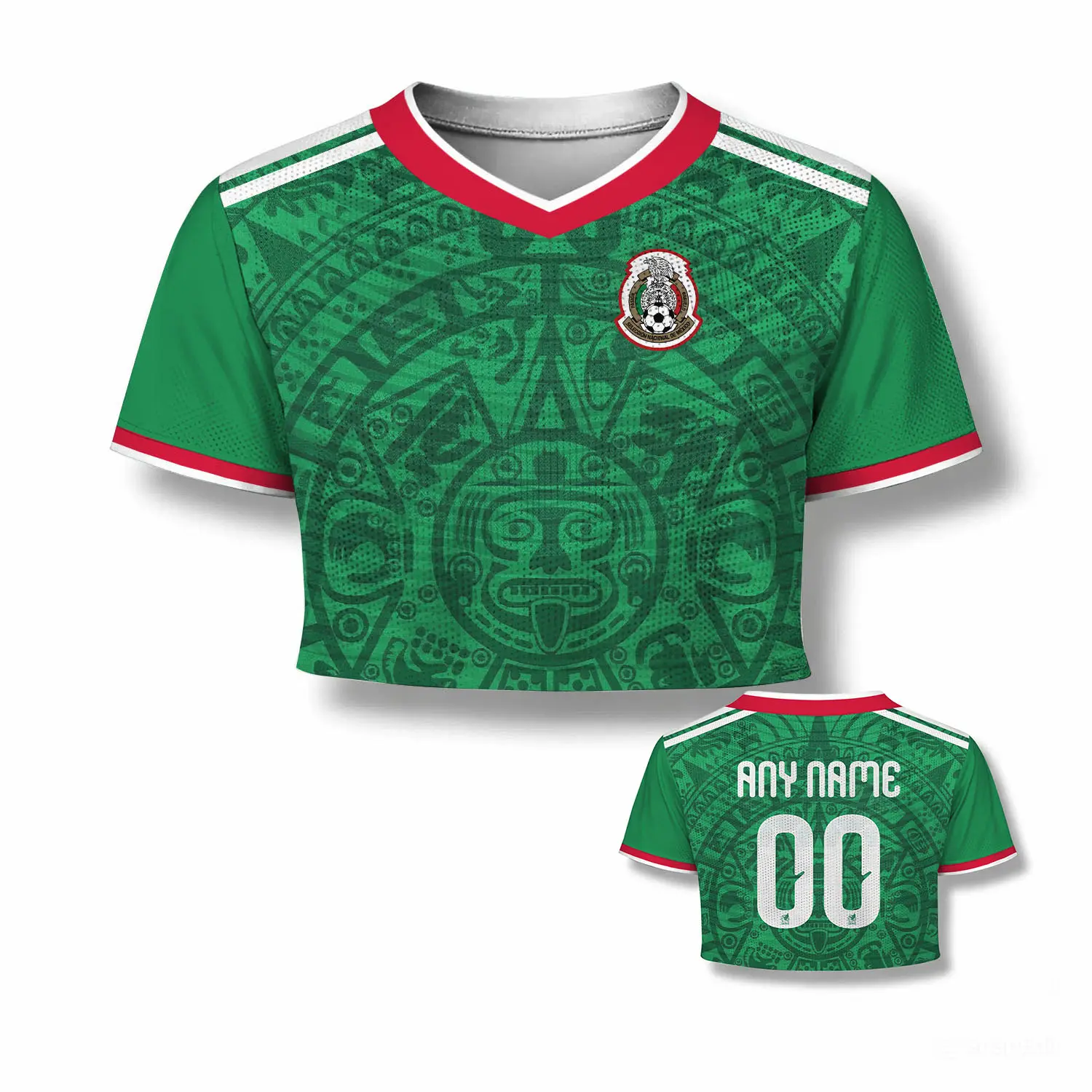 Mexico Crop Top Mesh Jersey – Personalized Name & Number, Black All Over Print Custom Jersey for Women