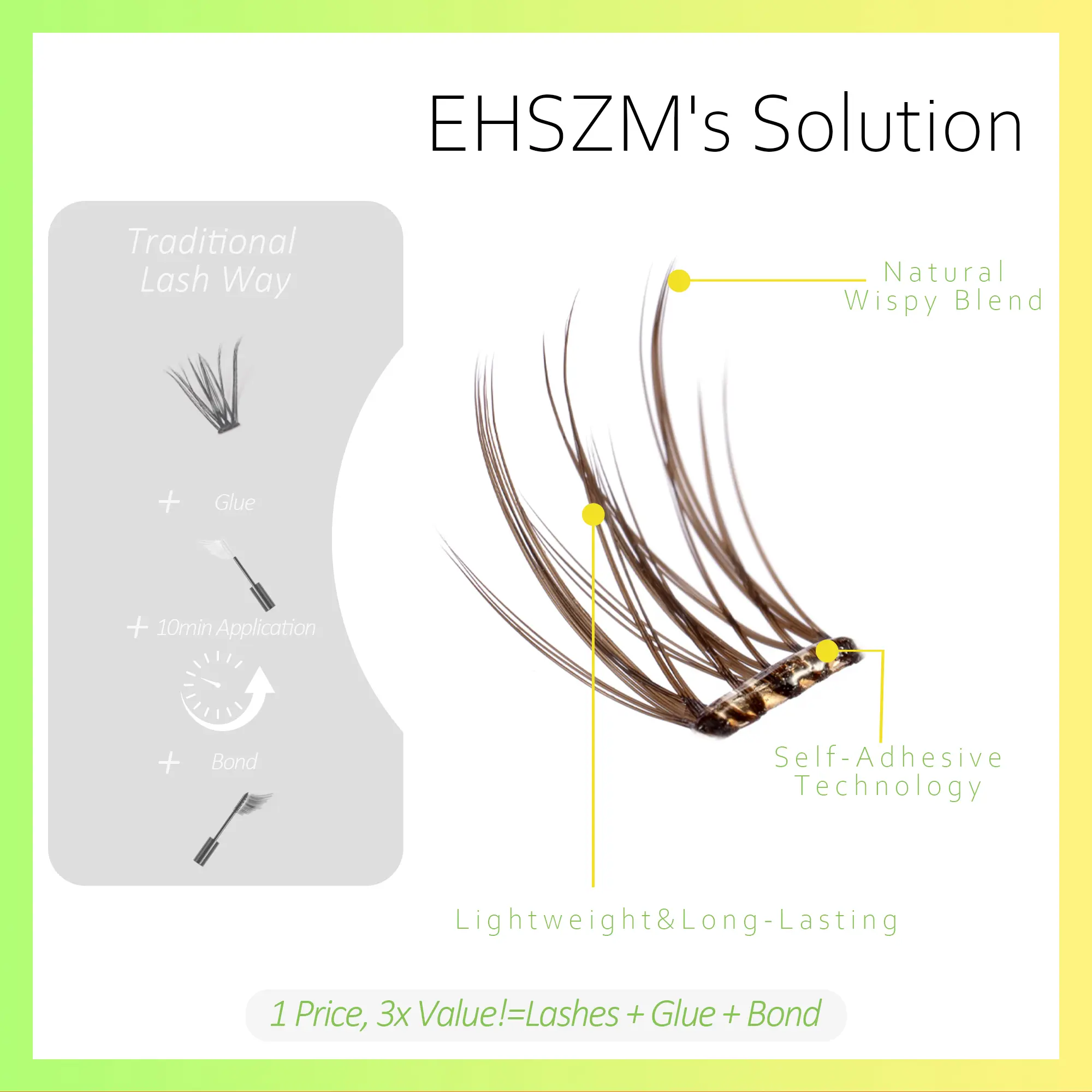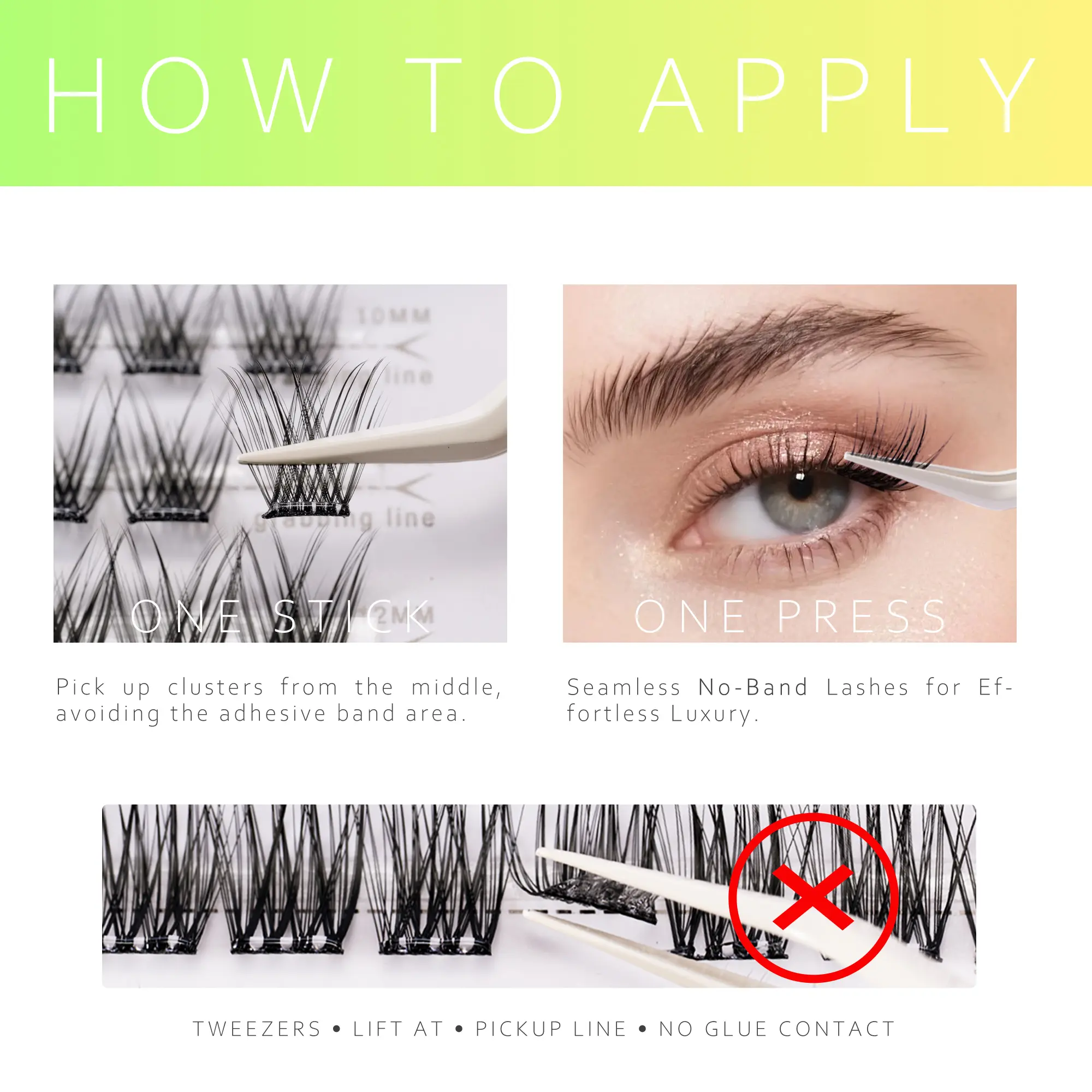 Self-Adhesive Technology “No glue, No mess – pop press, and go in seconds.” Ditch the sticky glue bottles and messy residue with our hassle-free pre-glued lash clusters. Activated by your body heat, they bond firmly in just 3 seconds—no waiting, no smudges, no accidental glue spots on your lids. Best of all. Perfect for beginners or anyone who hates the fuss of traditional lash application, you’ll be out the door with stunning lashes in minutes.