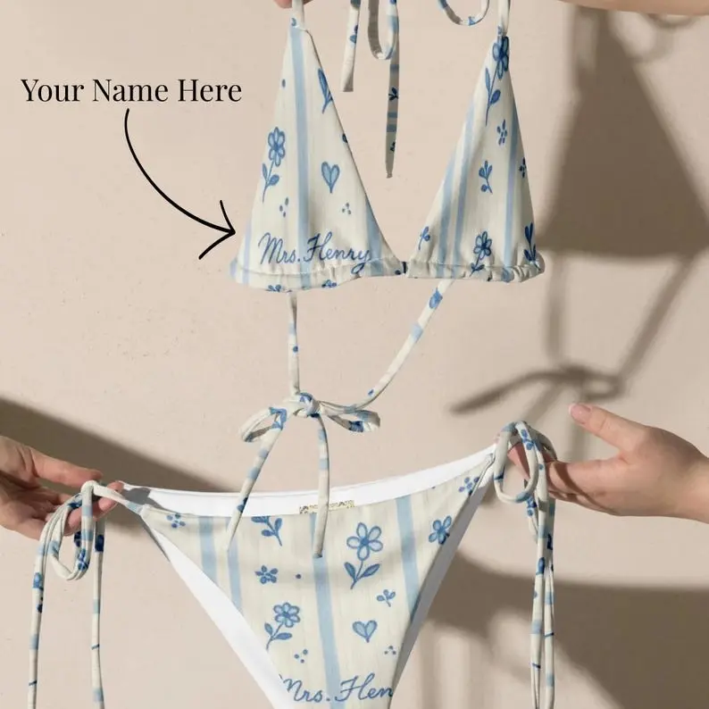 Personalized Bride Bikini Custom Name Two Piece Swimsuit Honeymoon Outfit Bridal Swimwear Wedding Gift Beach Vacation Set
