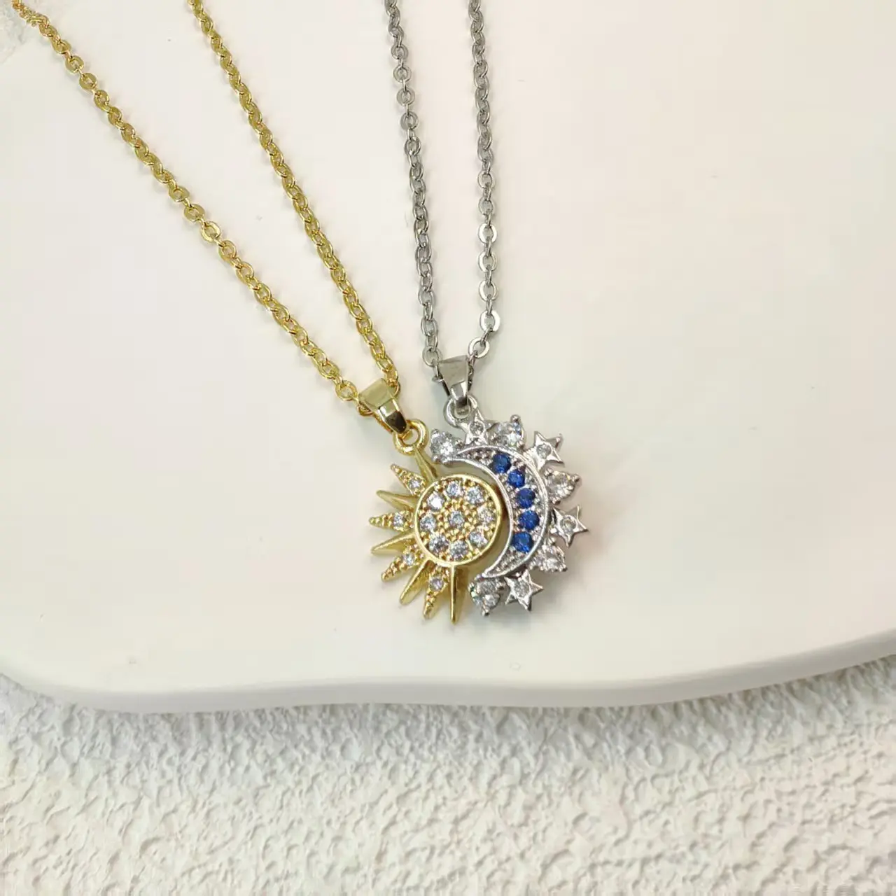 Sun & Moon Matching Couple Pendant Necklaces, Minimalist Micro Paved Design with Magnetic Clasp, Vintage Stackable Jewelry, Ideal Romantic Gift for Him & Her Daily Wear