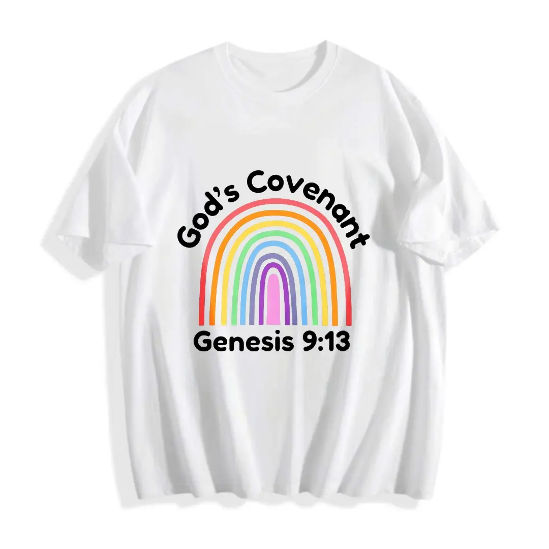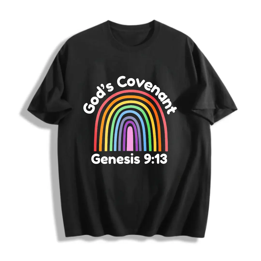 5. Religious Graphic Men's T-Shirt God's Covenant Rainbow Genesis 913 Design For Faith Based Wear Spring Summer Gift For Christian Men