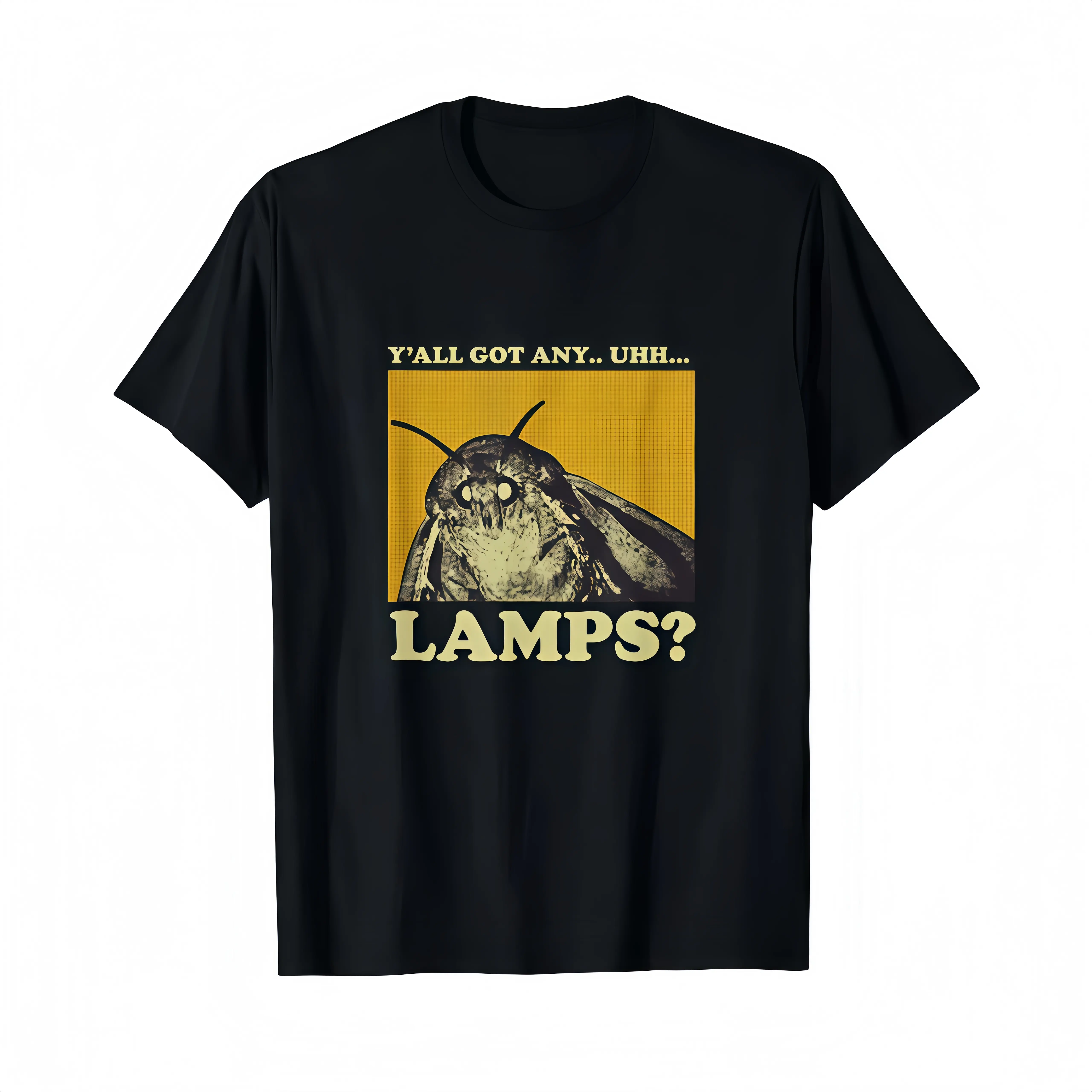Y'all Got Any Lamps Moth Insect Meme Gift T-Shirt, Meme Tee, Funny Shirt, Dumb Shirt. Unisex Graphic Tee, Funny Gift Round Neck Casual