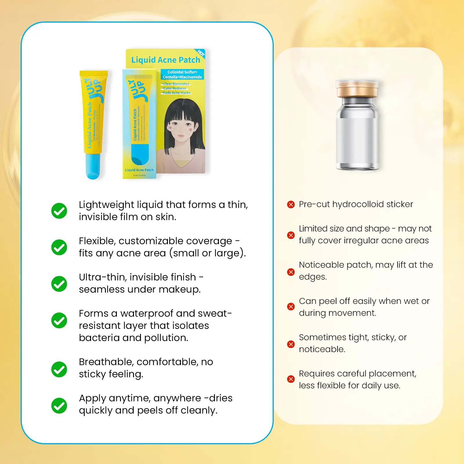 ·Custom Fit For Every Zit: Whether it's a tiny whitehead or a large cluster, simply apply a thin layer. No more wasting multiple patches.