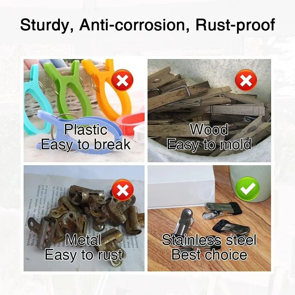 ✨ Versatile and Compact: These 10-pack clothes pins are perfect for various uses. Each pin measures 2.17 inches, making them ideal for photos, chips, and food. They serve as bag clips, mini clothespins, and food clips. Heavy-duty design ensures durability.
