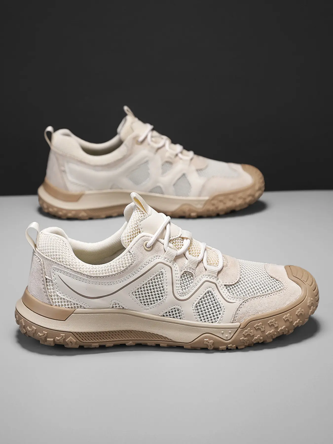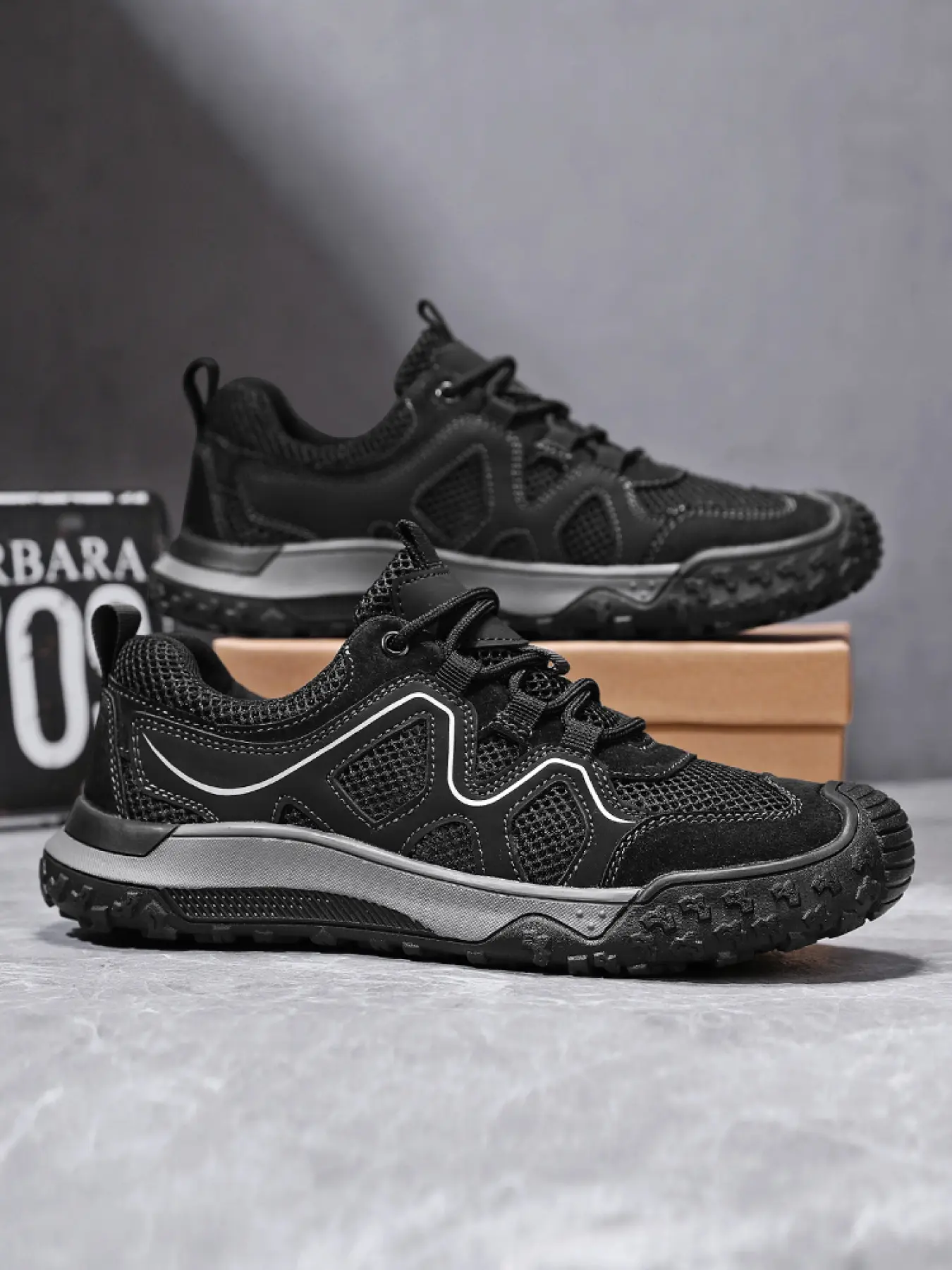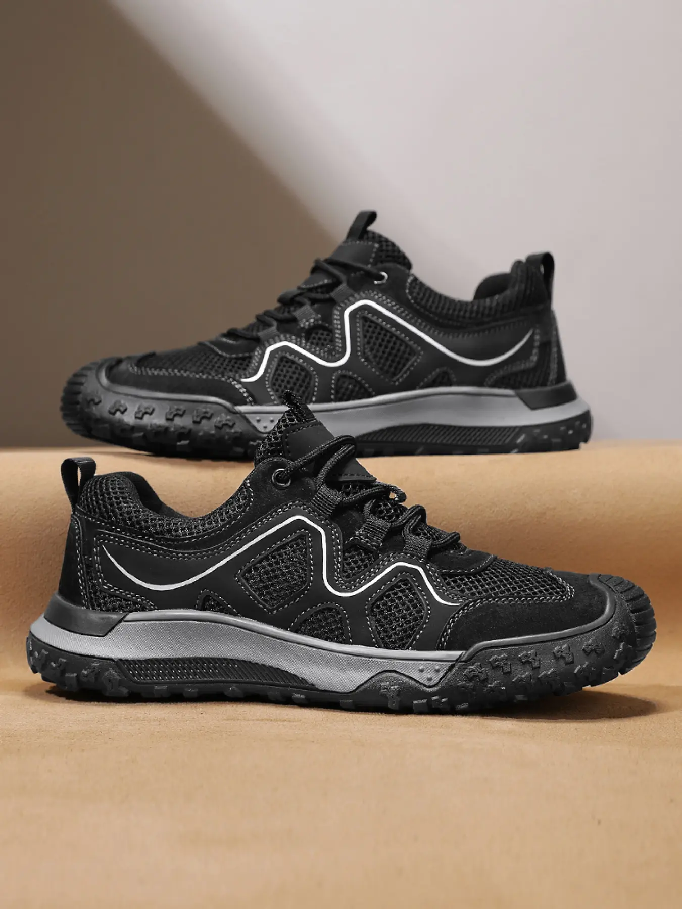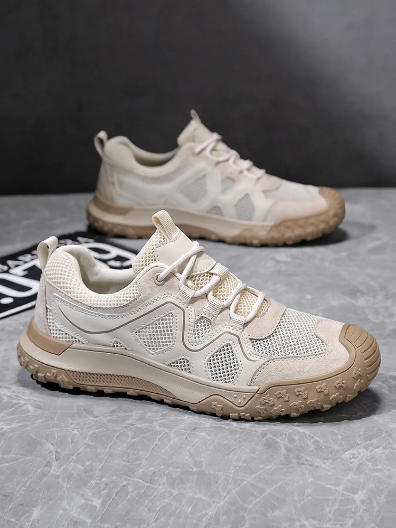 Men's Solid Color Mesh Breathable Outdoor Hiking Shoes Lace-up Closed-toe Trekking Shoes Non-slip Wear-resistant Casual Sneakers