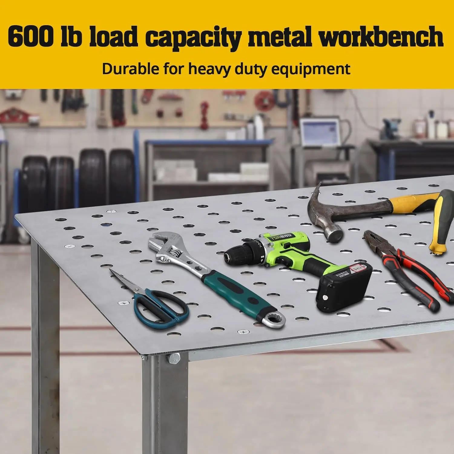 ·This workbench features standard 16mm holes(216pcs 5/8-inch fixture holes), spaced 2 in. Innovative double-layer storage board design doubles your storage capacity. The side panels and 11 hook convenient for storing and accessing various welding tools and clamps, Improving work efficiency.