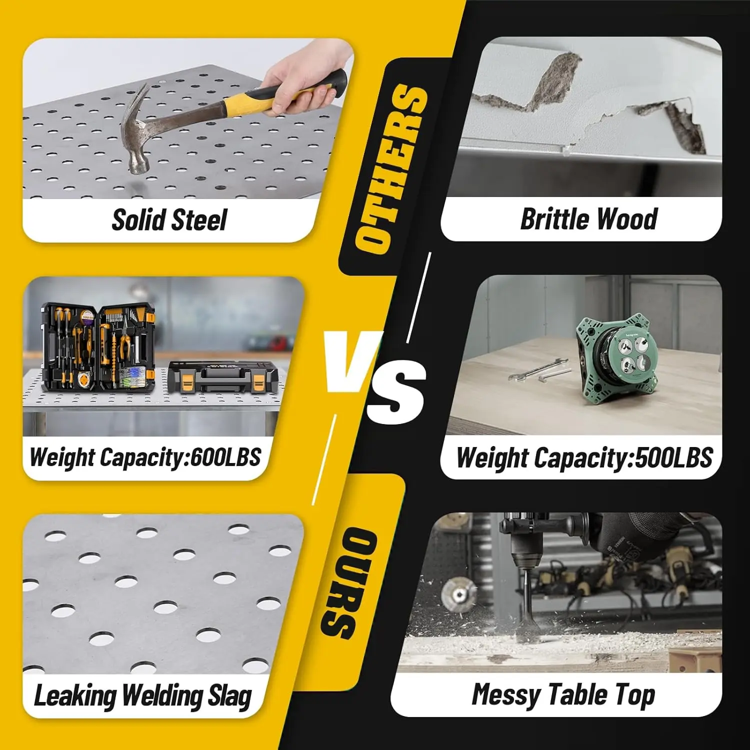 ·Strong weight-bearing and fixture holes promise flexibility and versatility for your welding projects. Say goodbye to disorder, unstable work surfaces and take your welding to the next level.