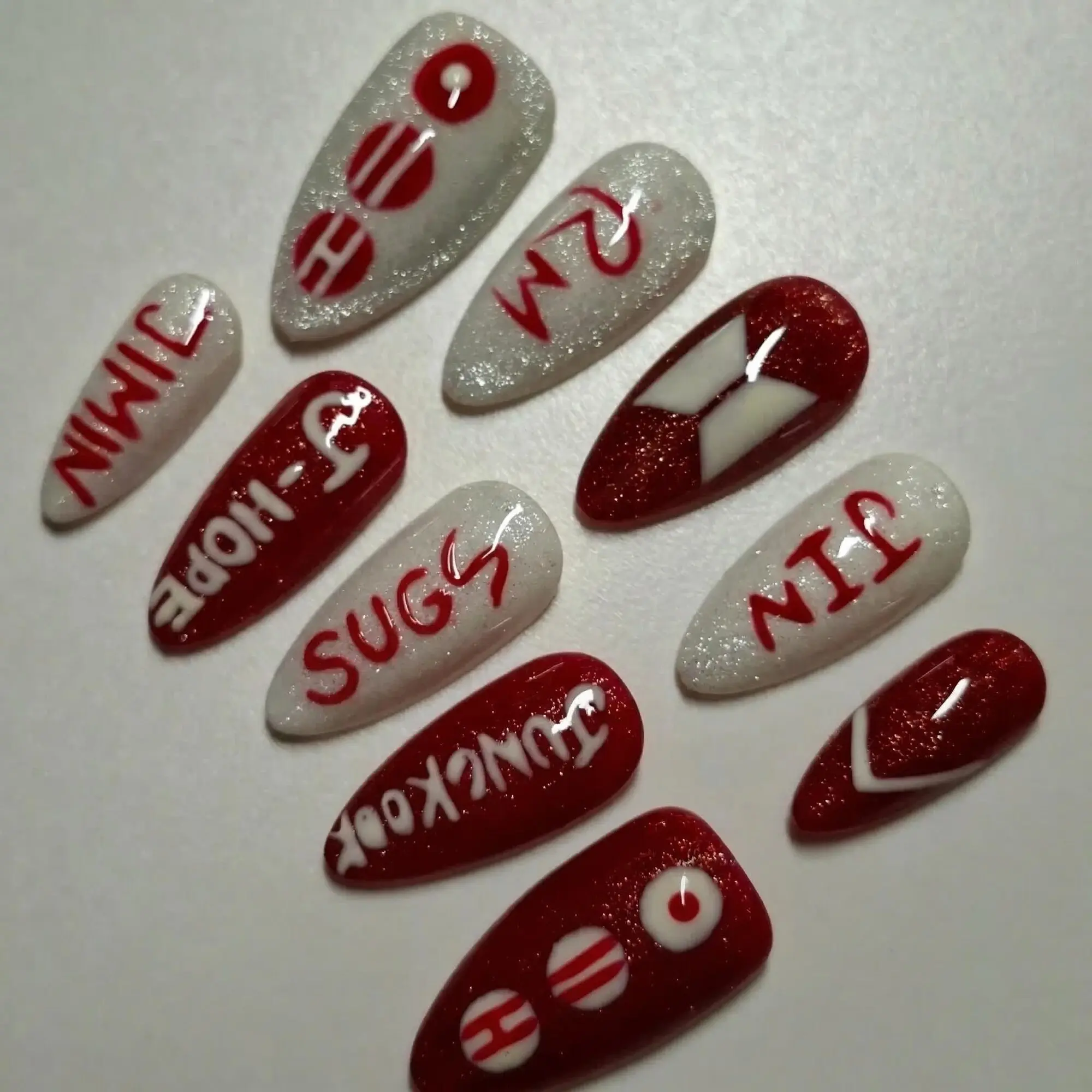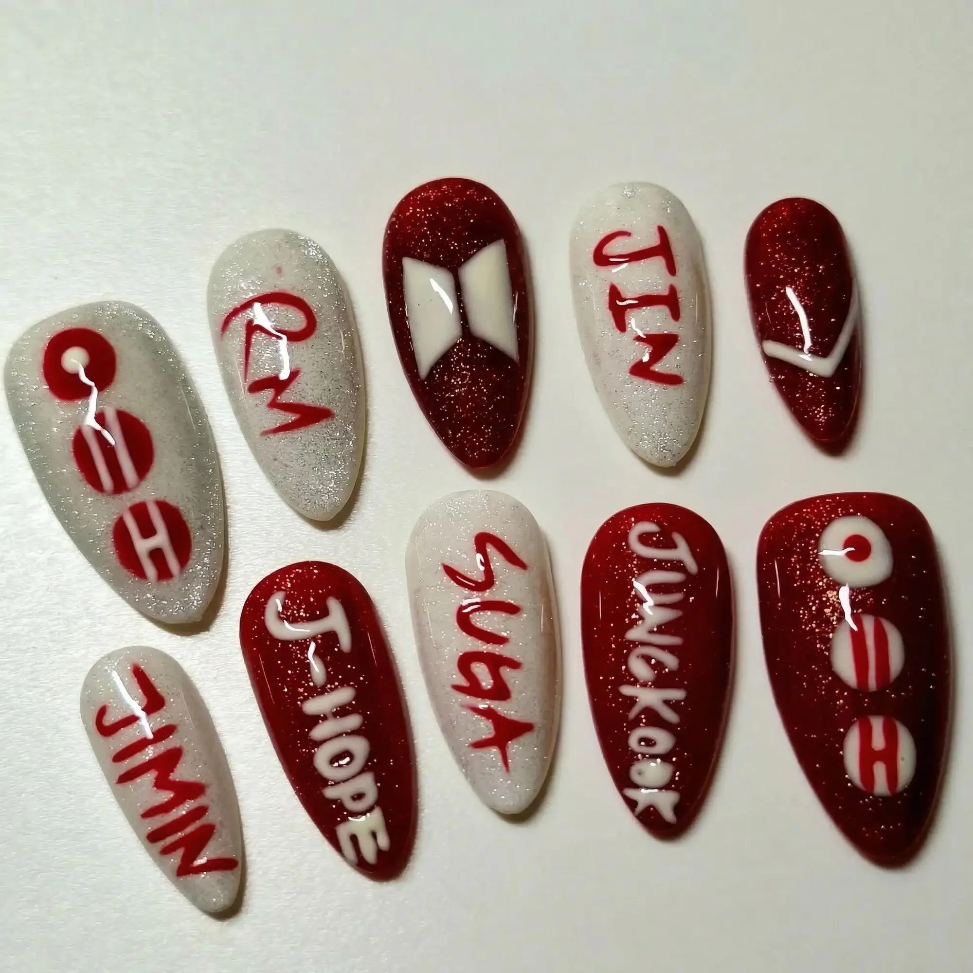 Korean Inspired Press-on Nails, Custom K-pop Almond False Nails VA32WS