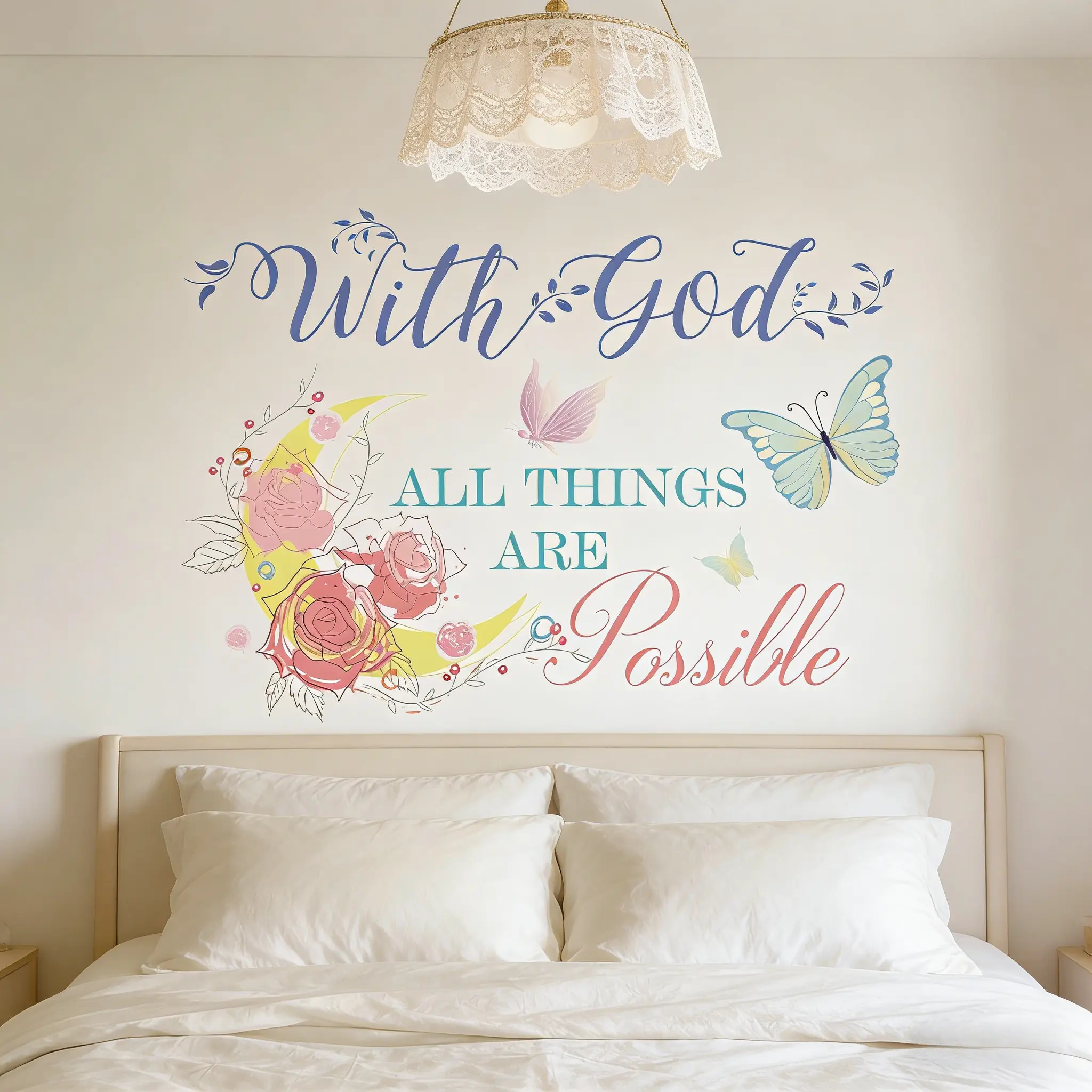 Gorgeous floral & butterfly wall decal that brings faith, hope, and positive energy to any room.Beautiful colorful design that elevates your home instantly!