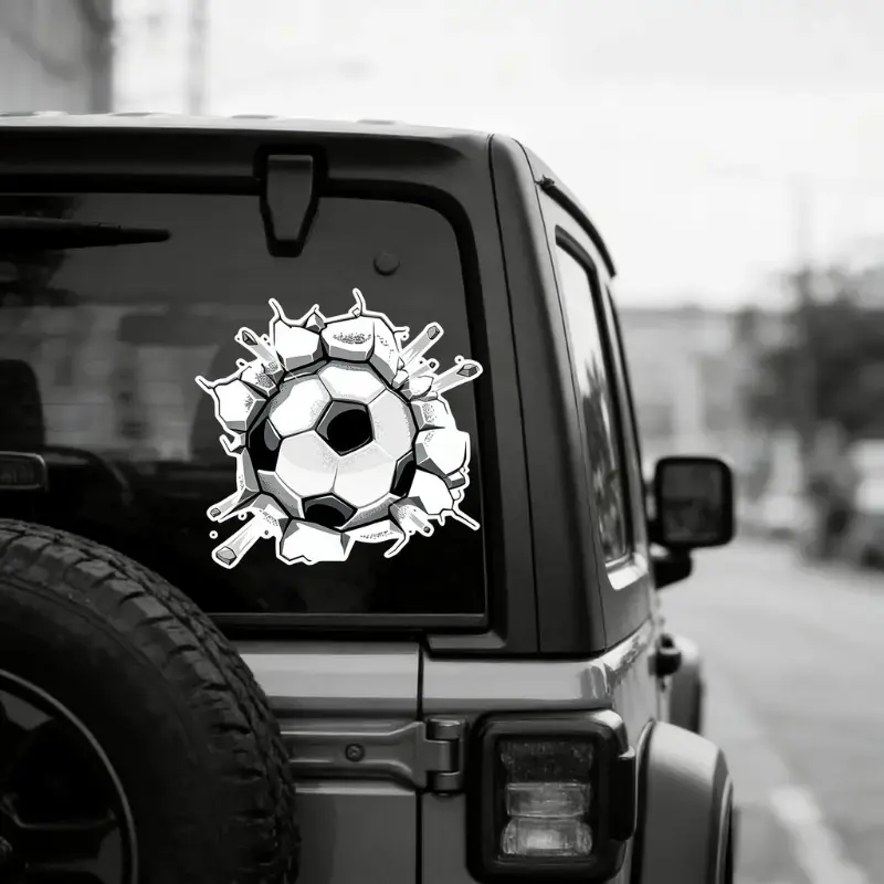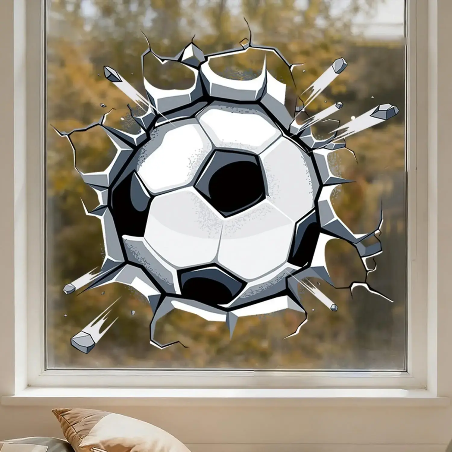 World Cup Soccer Ball Window Stickers, Break Through Wall Effect Football Stickers Decals, Window Stickers World Cup Decals Decor for Home School Office Decoration Party Supplies,1Pcs