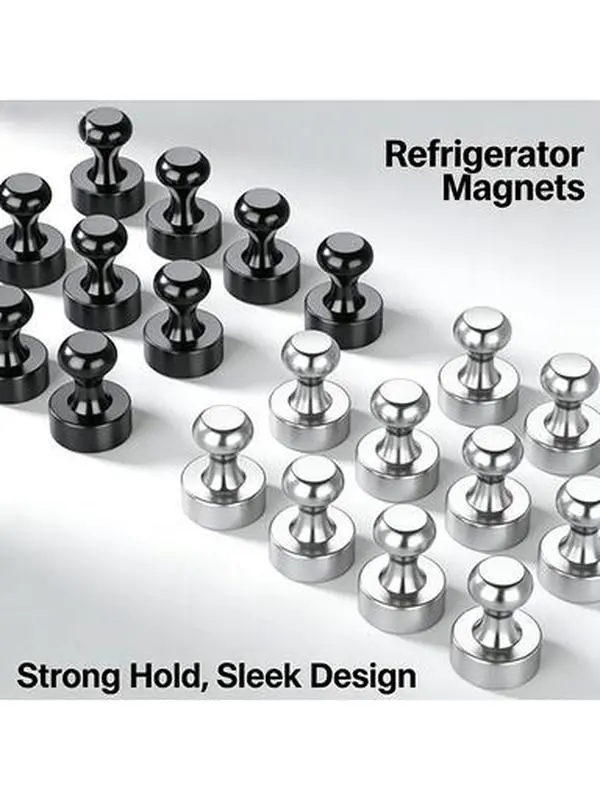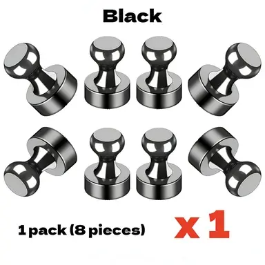 【STURDY AND DURABLE】: Rare earth magnets strong each one can holds up to 15 sheets of paper on any metallic surface. No more sliding papers with cheap magnets. These push pin magnets are tiny too so they won't cover up exact things you want to display.