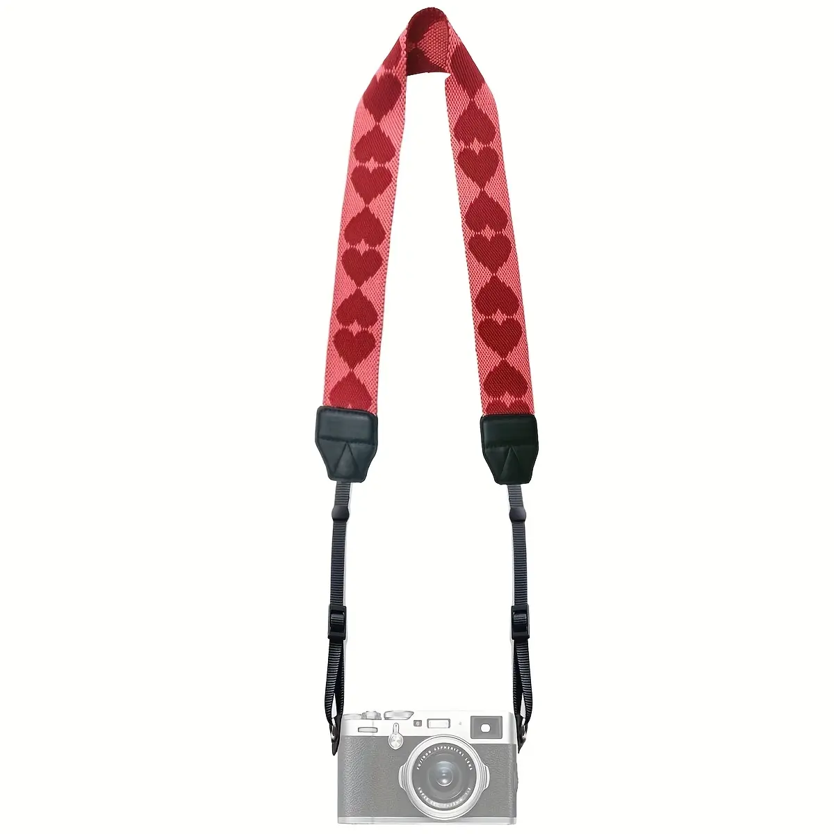 Camera Strap - Adjustable Pink Heart-shaped Crossbody Strap with Durable Trim, Elegant Pattern, Soft Polyester, Compatible with Many Cameras, with Quick Release Buckle