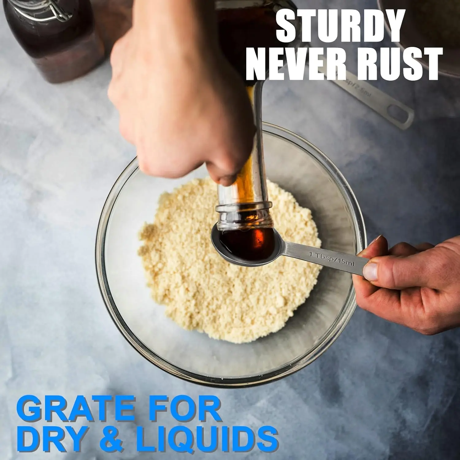 ·GUARANTEE SAFE FOR COOKING: Are you worried about silicone and plastic tools not safe for cooking? Protect your health using our stainless steel measuring spoons which are made of food grade stainless steel