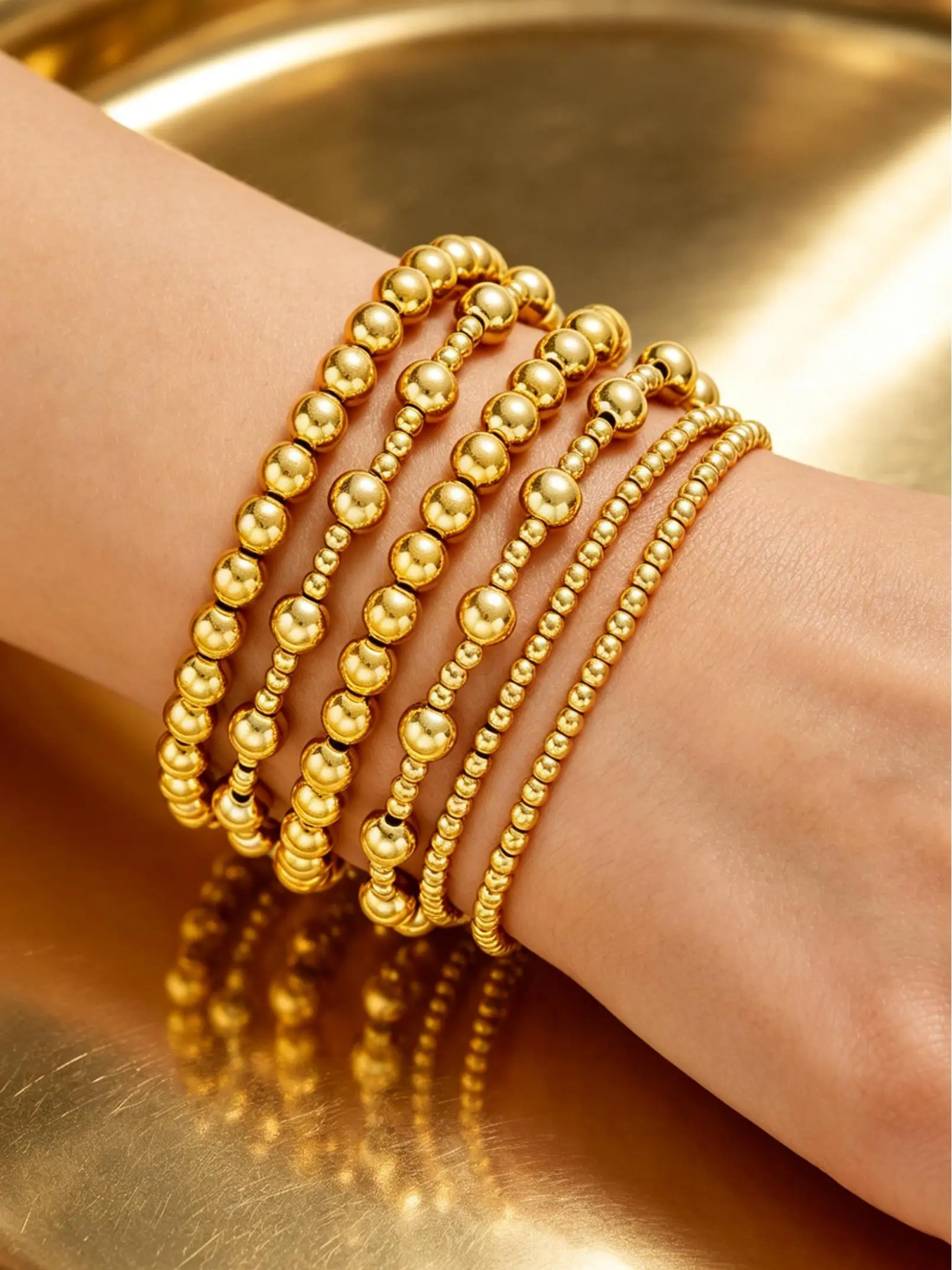 5. Women's Waterproof Bracelet Set, Adjustable Stackable Beaded Ball Chain Jewelry Gift, Elegant Ladies Accessory