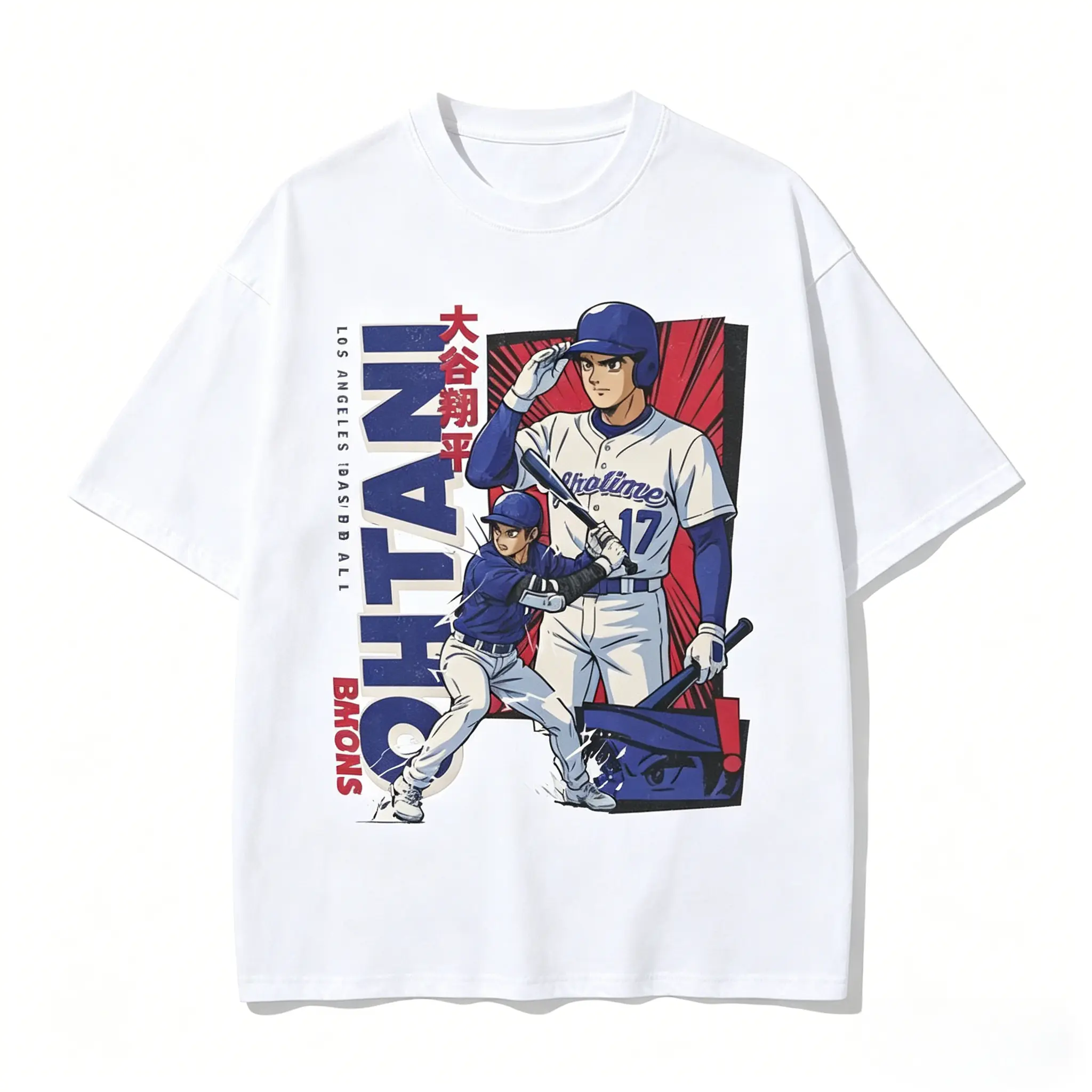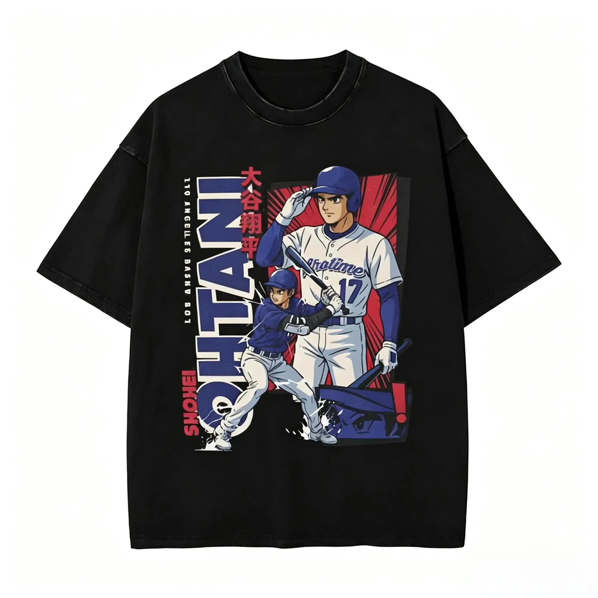 Ohtani Dodgers Anime Style Men's T Shirts Washed Funny Tee Shirt Short Sleeve O Neck T-Shirts 100% Cotton Plus Size Clothes