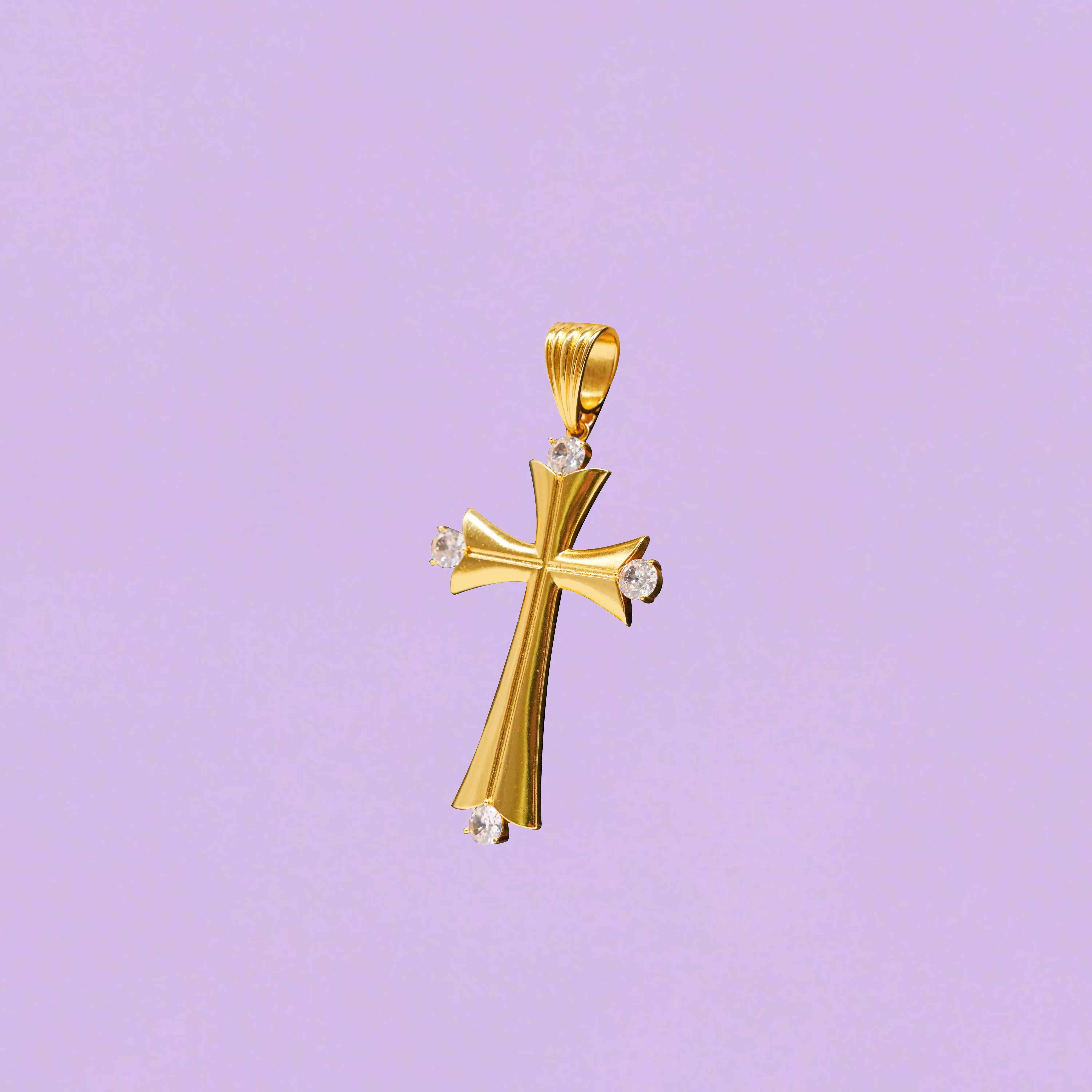This polished cross pendant is the perfect blend of classic symbolism and modern shine, designed to make a bold statement while honoring timeless style.