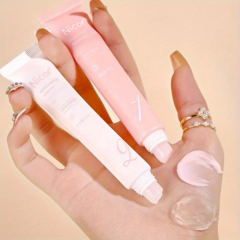 Gentle Moisturizing Hair Removal Cream Set - Includes 1 Depilatory Cream & 1 Aloe Vera Cream for Lip, Hand, Suitable for All Skin Types, Smooth Skin Solution|Nourishing Formula| Hair Removal Cream