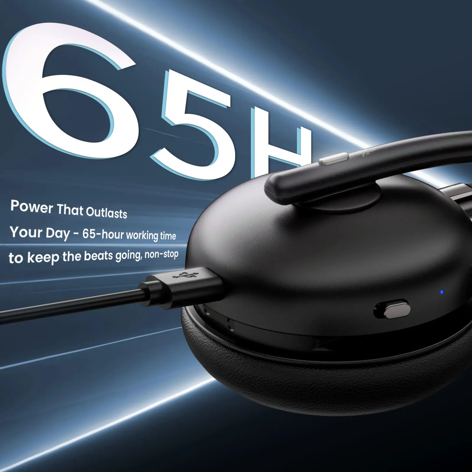 ·Long-Lasting Battery, All-Day Power: Never worry about battery life again. This wireless headset with microphone is built to support long workdays and extended entertainment sessions with an impressive battery life on a single charge. A quick charging time ensures the wireless headset is ready when you need it, delivering hours of continuous talk time, music playback, or online meetings. This Bluetooth headset keeps up with your schedule and helps you stay productive all day long