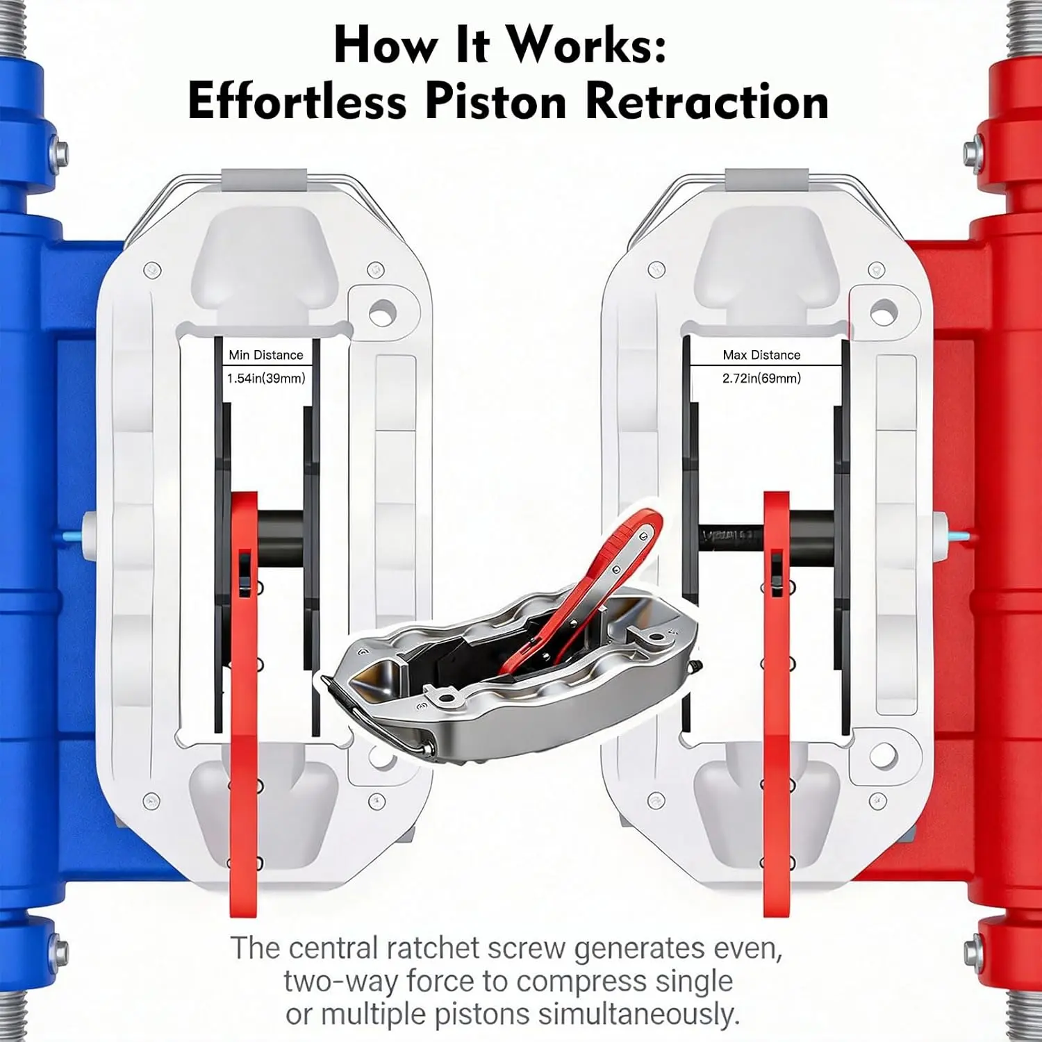 Red Brake Caliper Compression Tool,4-in-1 Universal Disc Caliper Tool with 2 Steel Plates&4 Caliper Hooks,360°Swivel Ratcheting Compressor for Automotive Brake Repair and Installation,Car Disc Brake Repair
