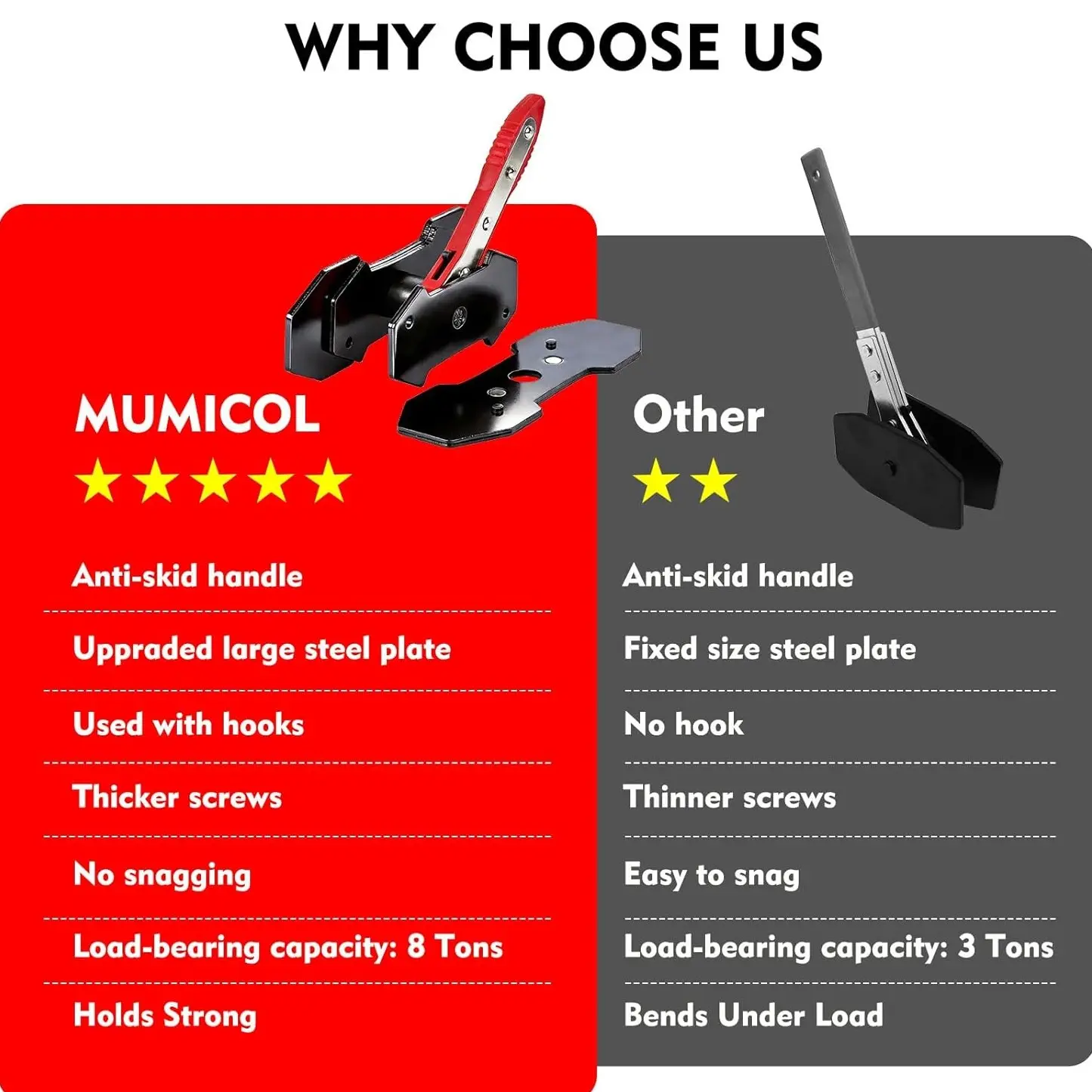 ·2 Steel Plates & 4 Hooks: Enhances grip and stability.