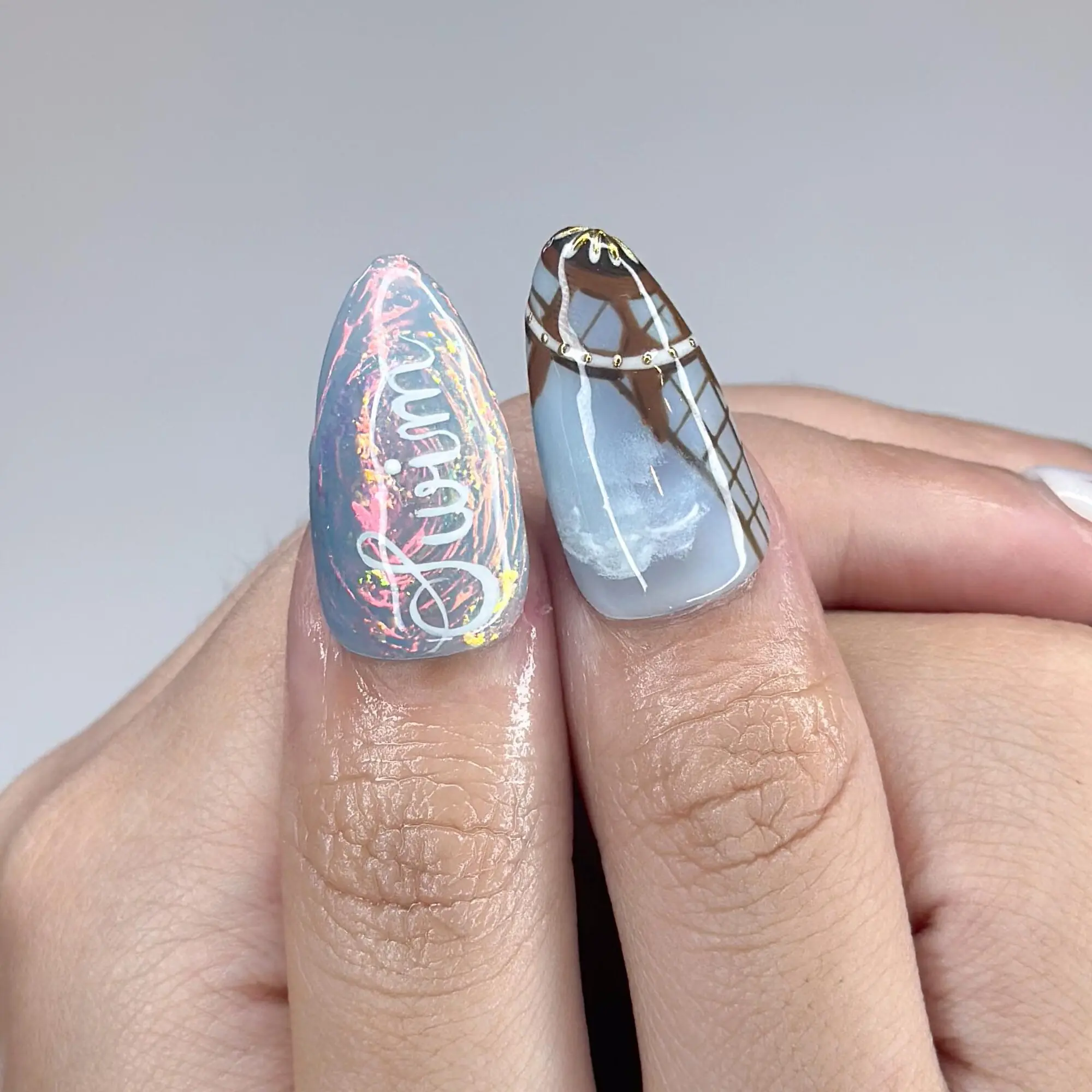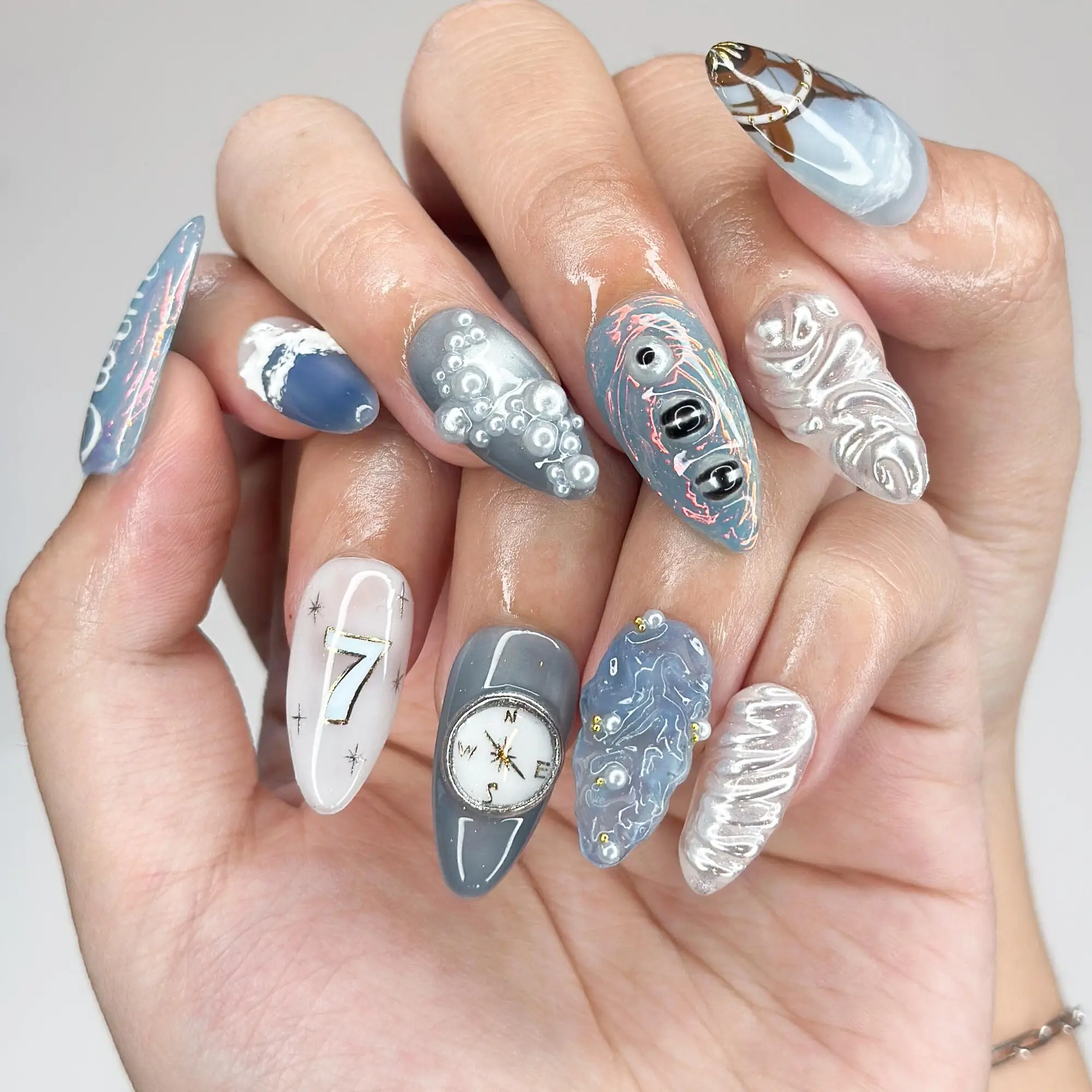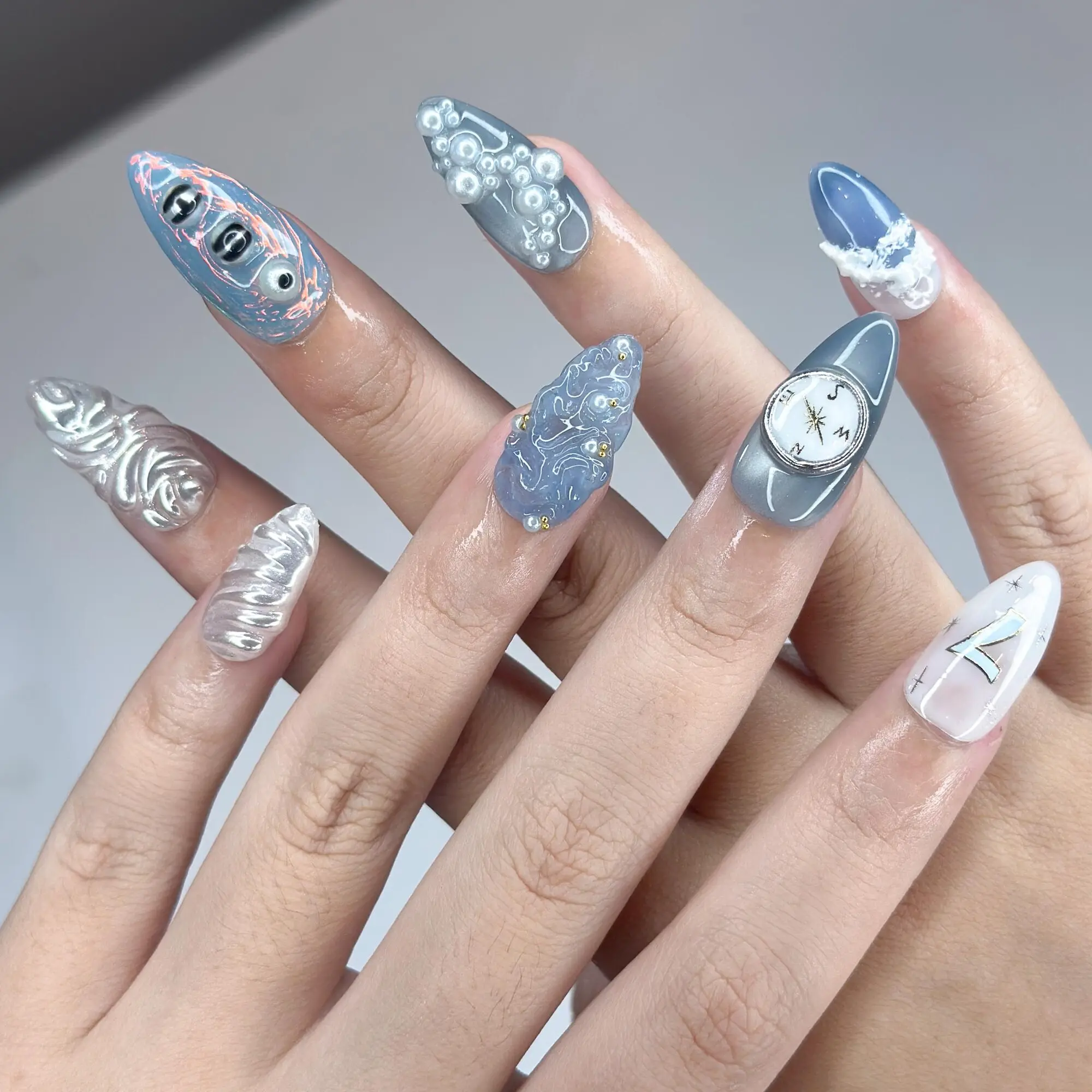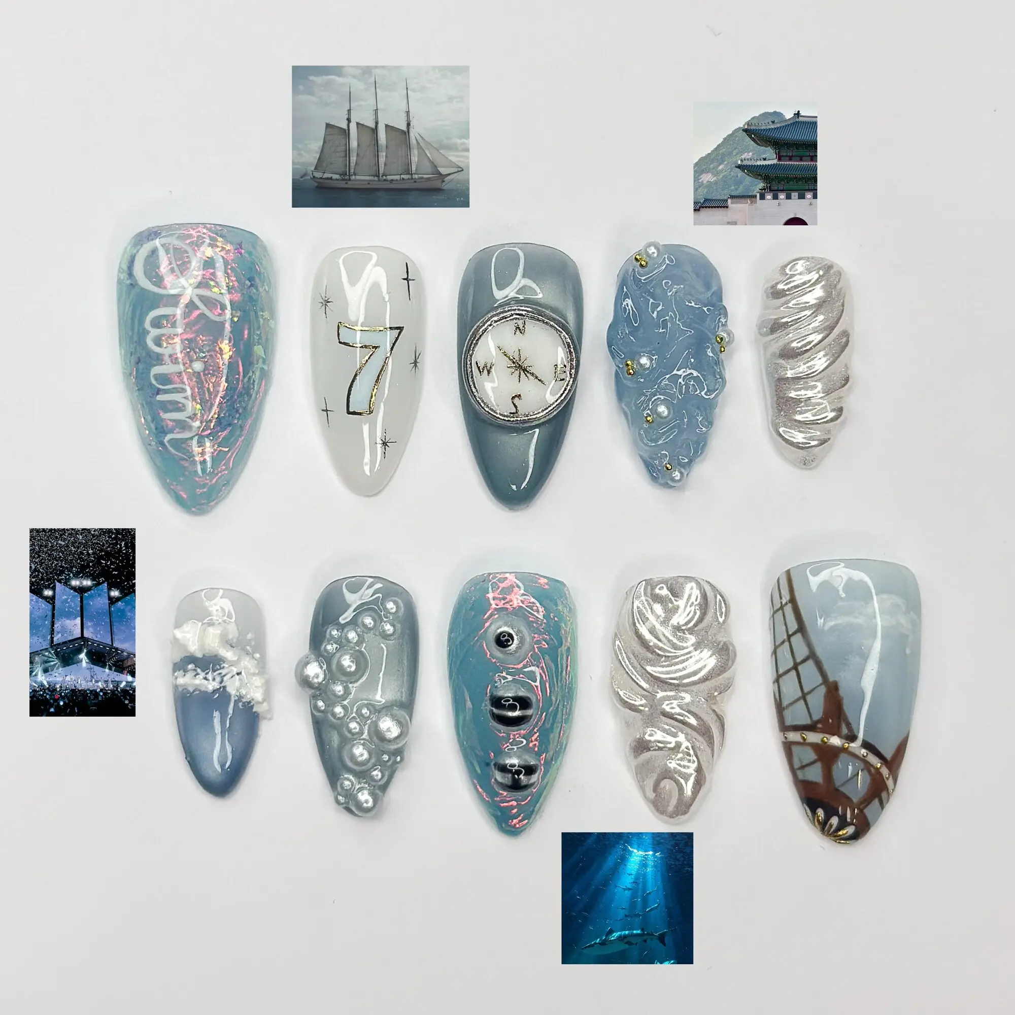 Kpop Inspired Celestial Voyage Nails | 7 Spirits Arirang Press Ons | Blue Aurora Silver Liquid Metal Nails |3D Fandom Concert Nails|JB365IK R6753L