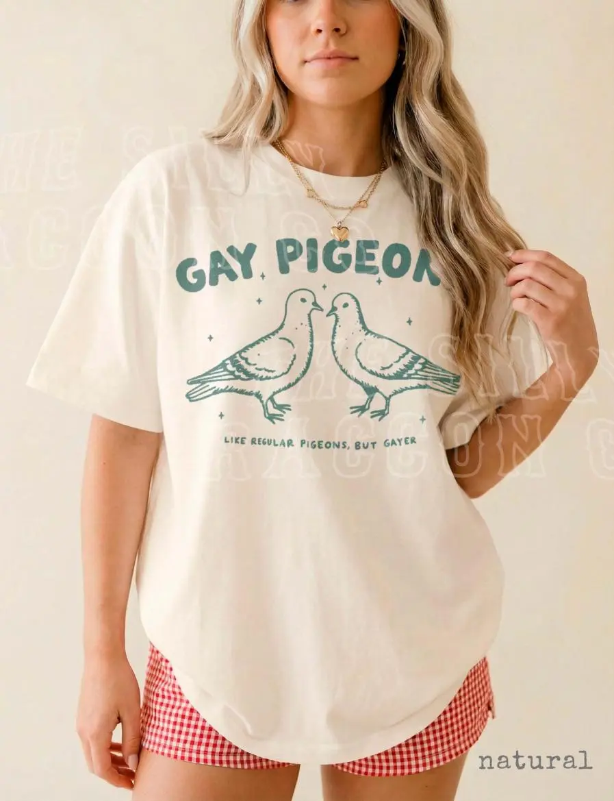 Gay Pigeons Comfort Colors® T-shirt, Funny LGBTQ Pride Tee, Vintage Queer Graphic Tee, Inappropriate Shirt, Sarcastic Humor Gift, Full Size Options, Everyone Can Find Their Fit, Easy to Wear, Just Throw It On
