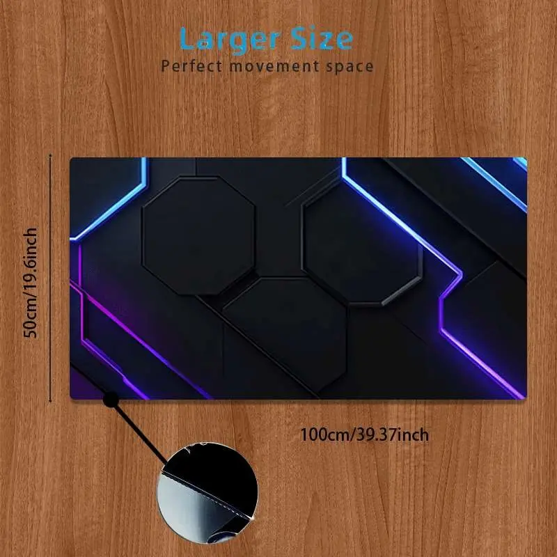 Durable Large Anti-Slip Rubber Mouse Pad, Blue Hexagonal Design, Gaming Office Desk Mat, Perfect Holiday Gift