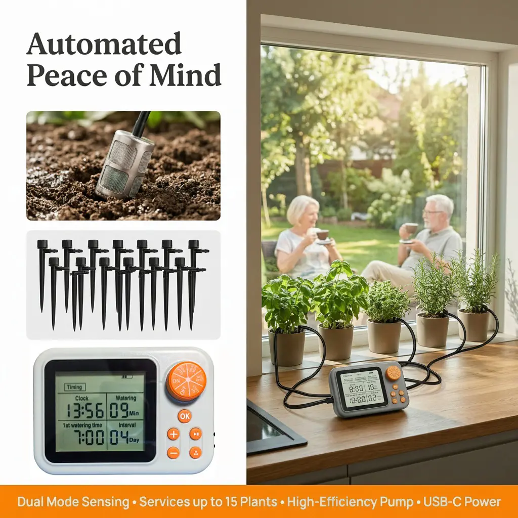 Automatic Plant Watering Indoor Automatic Watering System for 15 Potted Plants , Intelligent Soil Moisture Sensor, Self Watering
