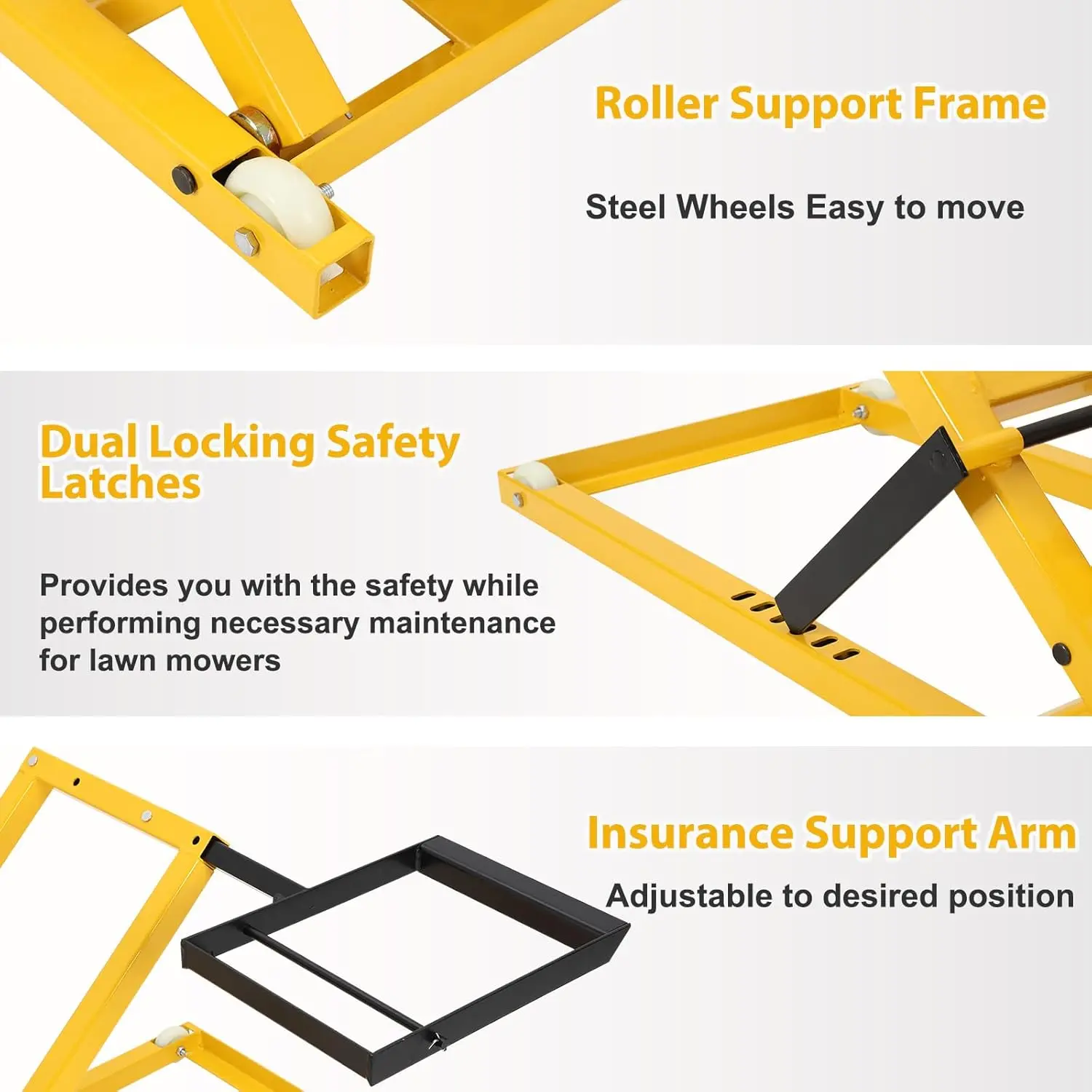 ·Sturdy Construction: Built with high-quality materials, this lawn mower lift jack ensures durability and stability, providing reliable support while you perform maintenance or repairs on your mower.