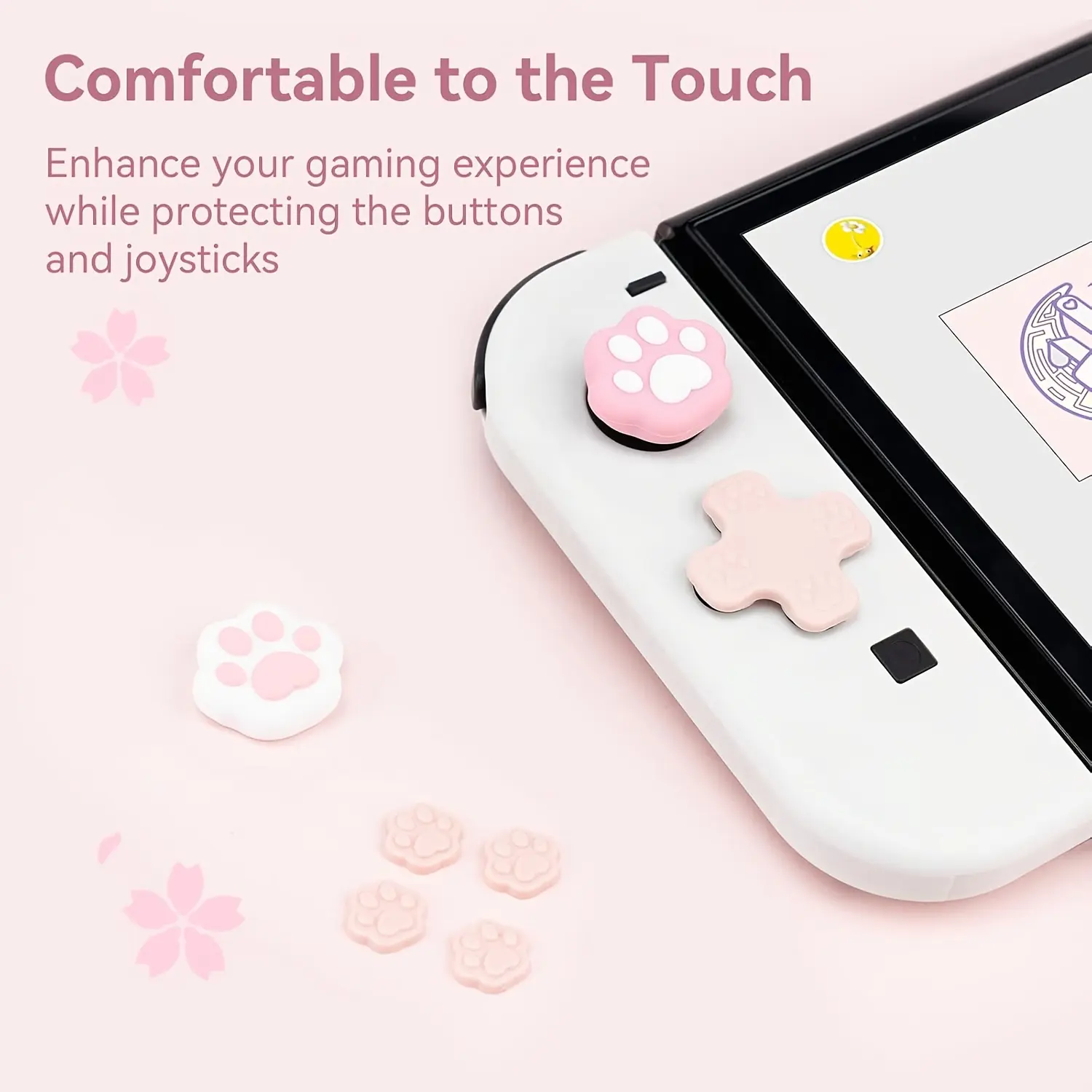 Silicone Cat Paw Button Caps for Switch/OLED Joystick - Pink, Non-Slip Grip, Durable & Washable, Compatible with Switch/OLED Rocker Caps, Cute Cat Paw Design for Enhanced Gaming Experience, Cat Accessories for Switch, Playful Accessory, Soft Texture